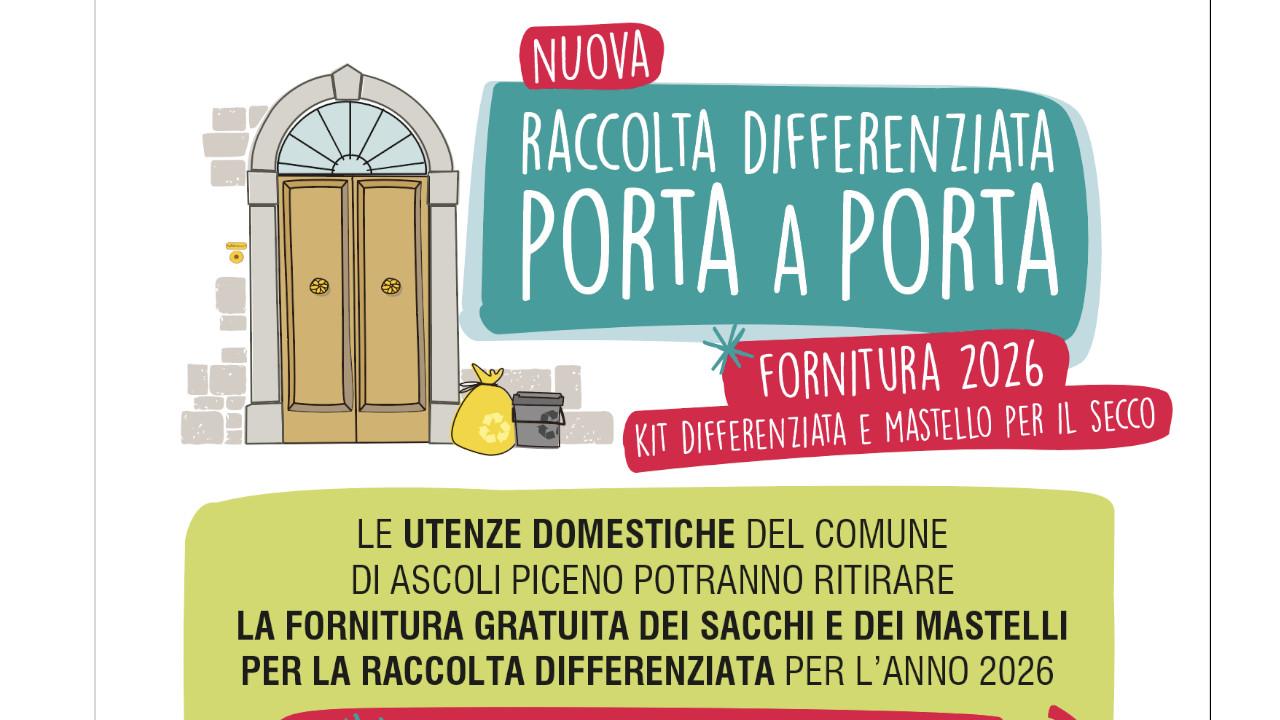 Una raccolta differenziata sempre più efficiente, in grado di proseguire il percorso “green” avviato dall'Amministrazione Comunale di Ascoli Piceno e migliorare ancor di più il decoro urbano. Un'importante novità per il 2026 è relativa alla modalità di conferimento del rifiuto del secco non riciclabile: non più mediante sacchi da esporre fuori dalla porta e lungo le strade, ma attraverso un apposito mastello che verrà consegnato a tutte le famiglie a partire da lunedì 2 marzo. Proprio da quella data infatti, e fino al 31 marzo, presso il centro distribuzione di via Calzecchi Onesti 12 sarà possibile ritirare gratuitamente il kit per la raccolta differenziata 2026, con fornitura dei sacchi e del mastello per il secco. Con questa modifica, il rifiuto del secco non riciclabile sarà gestito allo stesso modo dell’umido, che prevede già il ritiro attraverso apposito mastello, mentre per il ritiro di carta e plastica non cambierà nulla.