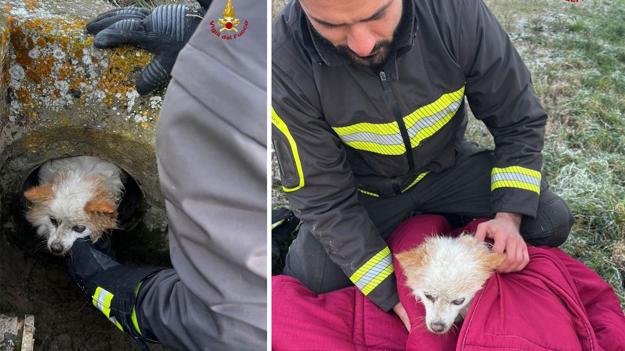 cane caduto all’interno di un tombino di circa 70 centimetri, con
