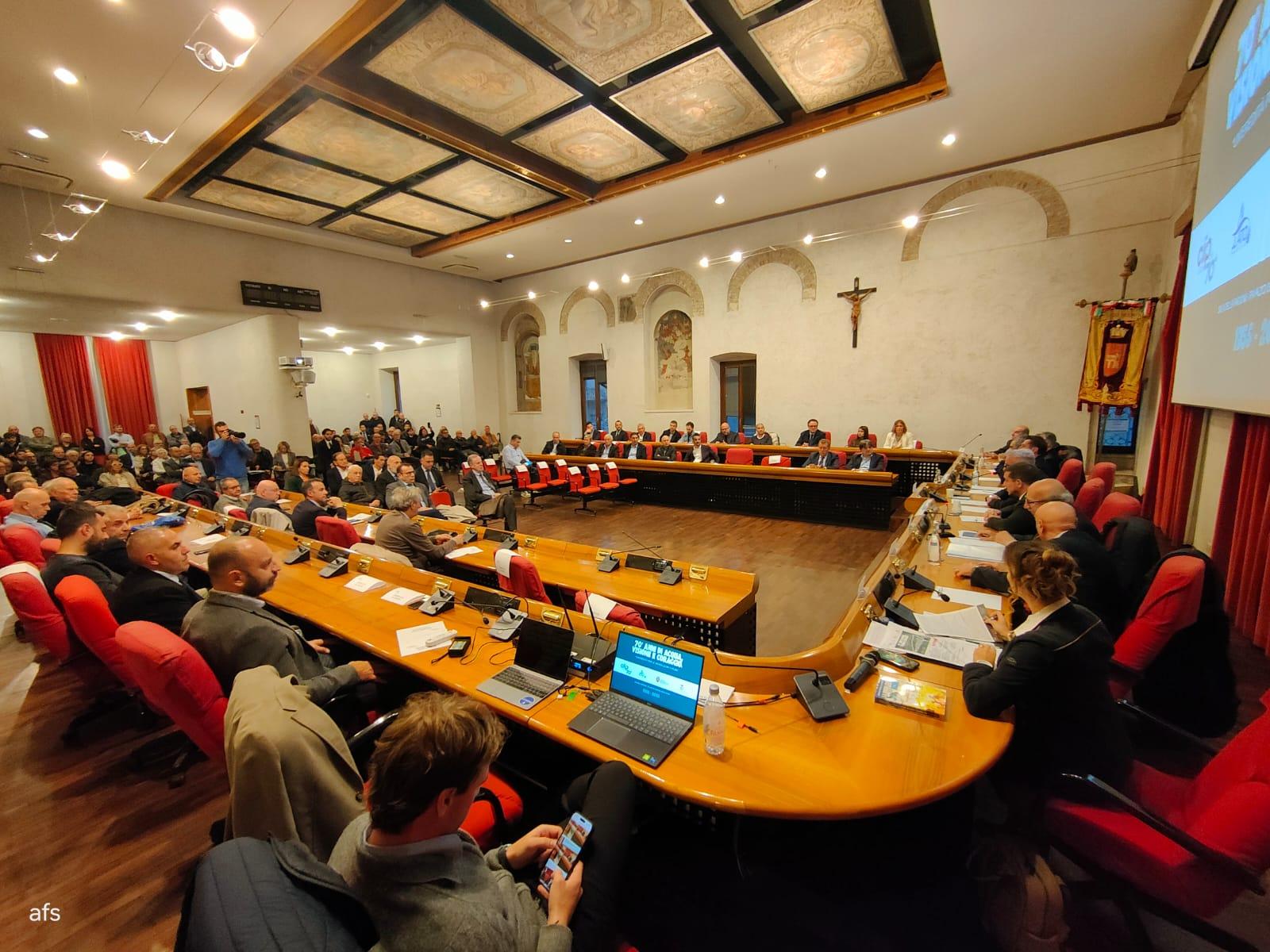 "Guidare un'azienda così importante - ha proseguito il sindaco di Ascoli Piceno Marco Fioravanti - richiede una grande energia e una grande competenza. Ringrazio dunque la CIIP per il lavoro profuso in questi anni. Parliamo di una realtà capace di pianificare il futuro con lungimiranza. Nel 1929 nacque infatti il primo consorzio idrico, ed Ascoli dimostrò di avere una visione straordinaria, custode di un modello embrionale di ciò che è oggi l'azienda. Tanti anni sono trascorsi, ma la convinzione che l'acqua potesse unire fu la scintilla che fece scoccare tutto. L'opera qui menzionata ha portato benessere, sviluppo e dignità. Dobbiamo dunque custodire, a fronte di questo anniversario, l'eredità di chi ci ha preceduto".
