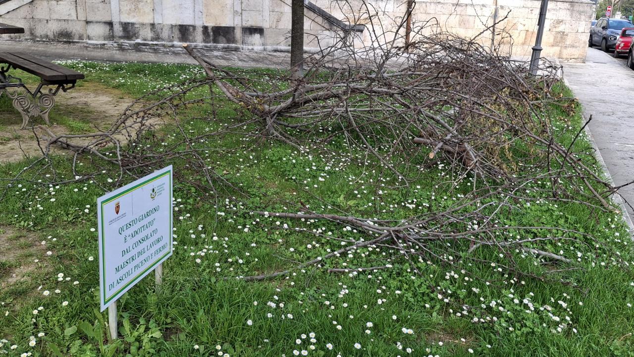"Non è la prima volta che il giardino Don Rodilossi di via Dino Angelini a Porta Romana viene interessato da atti vandalici, ma questa volta qualche ben pensante è andato ben otre e non ha trovato di meglio che depositare da alcuni giorni i residui di potatura proprio in quel giardino, a dimostrazione di come la maleducazione e l’arroganza, anche nella nostra città non abbia purtroppo limiti". Lo sfogo è di Giorgio Fiori, Console dei Maestri del Lavoro che già da tre anni hanno “adottato”, a titolo del tutto volontaristico e gratuito, quel giardino, con una specifica convenzione con il Comune di Ascoli Piceno, curando sistematicamente il decoro di quel bel spazio verde centrale, fruito ferquentemente dai residenti del quartiere e non solo. “Proprio la scorsa settimana, aggiunge Fiori, la squadra dei Maestri volontari, guidata dal vice Console Alessandro Castelli, aveva provveduto a tagliare l’erba e a ripulire di carte ed altro l’intero spazio ed ora vedere il lavoro fatto reso del tutto vano, da un’azione di vera inciviltà fa davvero male. Purtroppo noi Maestri non abbiamo mezzi ed attrezzature per rimuovere il cumulo di sterpaglie abusivamente depositate per cui abbiamo richiesto al Comune di intervenire per questo, ma anche per individuare e quindi adeguatamente sanzionare gli eventuali responsabili”.