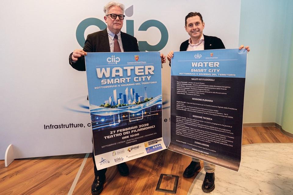 Il progetto Water Smart City – Sottoservizi e Governo del Territorio ad Ascoli Piceno, in programma Venerdì 27 Febbraio 2026 presso il Teatro dei Filarmonici, mira a innovare la gestione delle infrastrutture idriche e del territorio. L'incontro che coinvolge la Ciip e il Bim Tronto vede l'importante sostegno del Comune di Ascoli Piceno, per discutere soluzioni smart per la gestione sostenibile dell'acqua. Il convegno è stato presentato oggi presso la sala conferenze della sede del consorzio idrico.