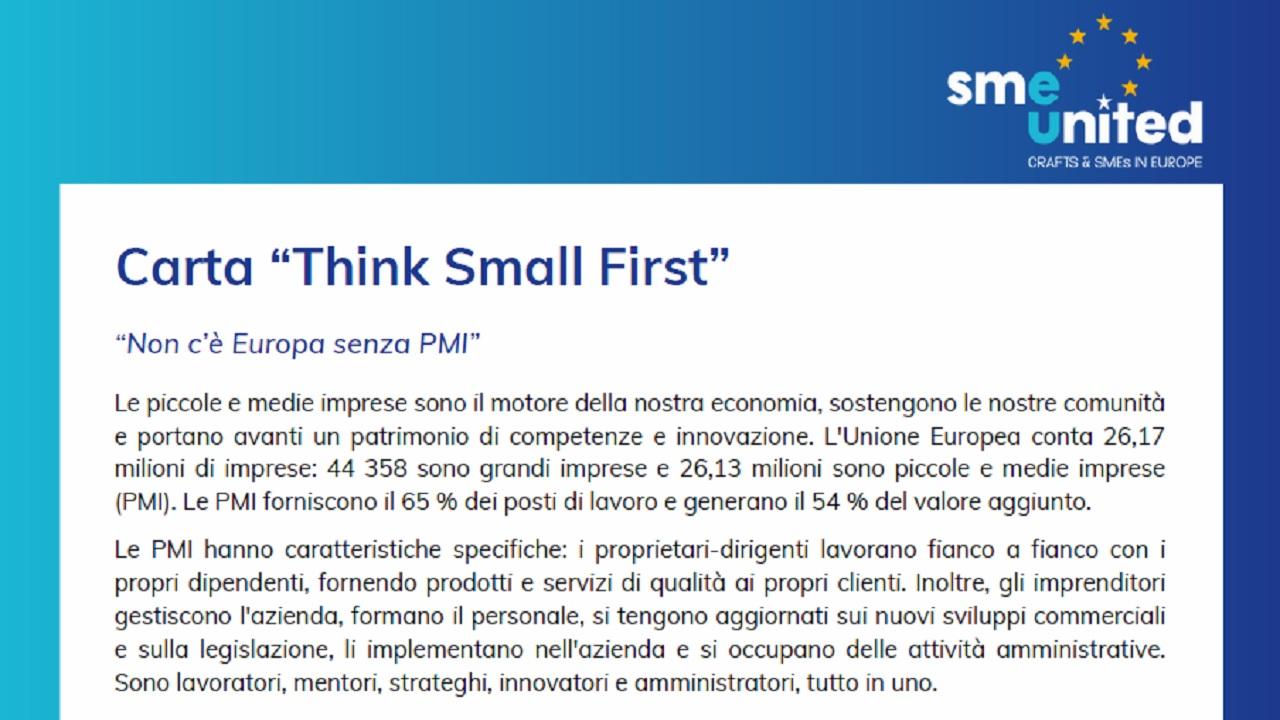 La Carta “Think Small First”, nata dal principio introdotto dallo Small Business Act del 2008, riafferma l’urgenza di “pensare innanzitutto in piccolo”, un principio che si basa sulla consapevolezza che “non esiste una soluzione valida per tutti”.