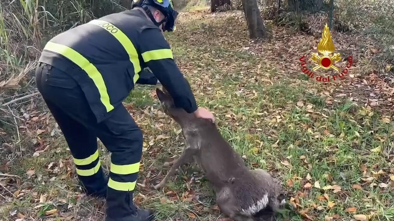 I Vigili del fuoco di San Benedetto del Tronto sono intervenuti nella mattinata odierna a Montefiore dell'Aso dove, all’interno del perimetro della zona dove è dislocato il depuratore in contrada San Giovanni, hanno soccorso un capriolo che era caduto nei vasconi ed era impossibilitato ad uscire autonomamente. Dopo averlo immobilizzato e riportato sul piano strada, è stato liberato nella natura circostante.