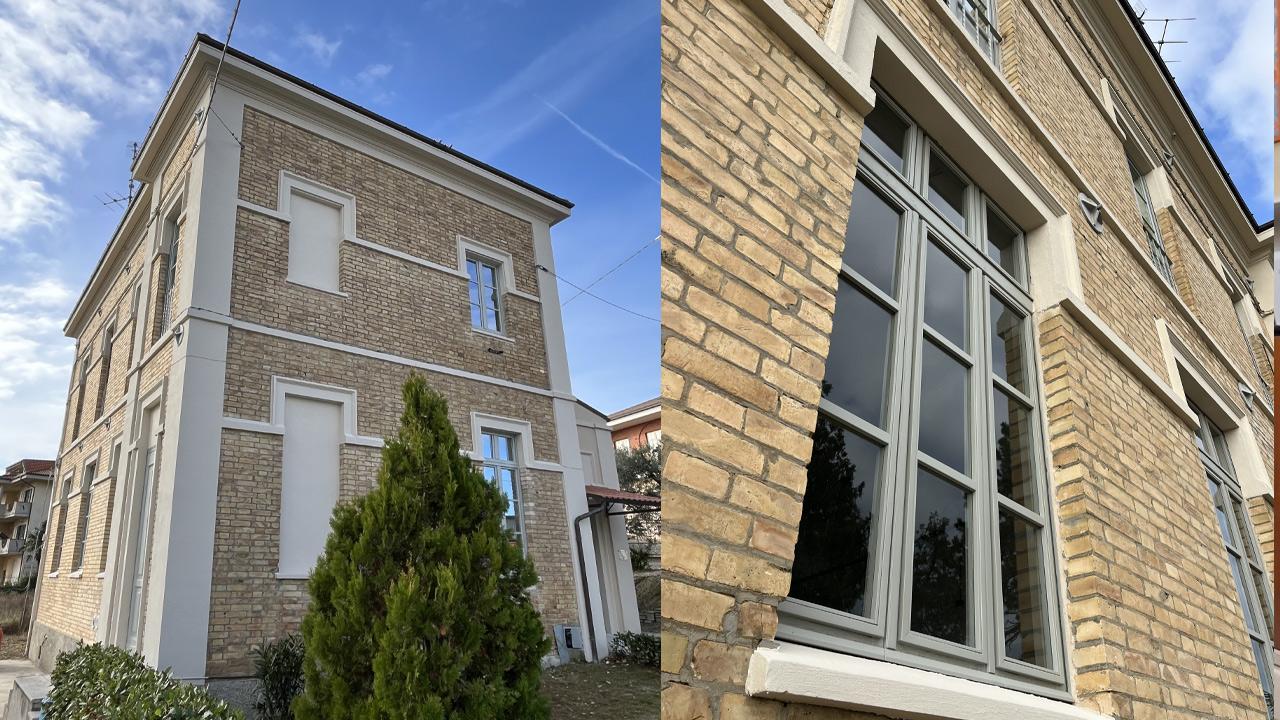Dopo una prima fase di riparazione dei danni sismici e di interventi strutturali (che hanno coinvolto, in particolare, la copertura ed il solaio interpiano) - finanziati da fondi gestiti dall’Ufficio Speciale per la Ricostruzione delle Marche - si è recentemente conclusa una seconda ed importante fase di lavori per l’esecuzione di opere di restauro, di riduzione della vulnerabilità sismica e di efficientamento energetico - finanziati con fondi PNRR, Missione 1, Componente 3, Intervento 2.2 (protezione e valorizzazione dell’architettura e del paesaggio rurali attraverso il bando della Regione Marche); tale fase ha permesso la sostituzione degli infissi, la ricostruzione della stratigrafia controterra incluso il ripristino della pavimentazione, il restauro dei finestroni originali lignei, il restauro delle murature interne ed esterne, l’allestimento di nuove dotazioni termotecniche. Grazie a questi interventi, la storica sede della scuola materna ed elementare del Trivio di Ripatransone, edificio la cui costruzione risale agli anni Venti del Novecento, da decenni ormai destinata dal Comune ad attività associazionistiche, torna a nuova vita.