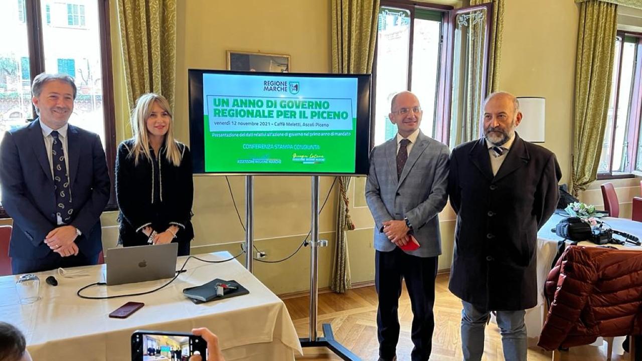 Si è svolta stamattina presso lo storico Caffé Meletti la conferenza stampa congiunta degli esponenti di centro-destra del territorio Piceno attualmente impegnati nel governo regionale all'interno della squadra del governatore Acquaroli. Ad esporre i dati relativi dopo il primo anno di attività politica portata avanti in regione sono stati gli assessori Guido Castelli, Giorgia Latini ed i consiglieri Andrea Assenti e Andrea Maria Antonini.