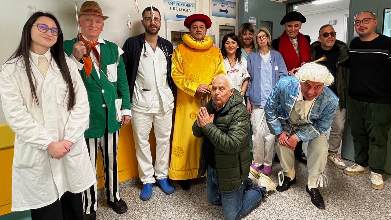 Le maschere storiche del Carnevale ascolano in visita all'ospedale 'Mazzoni'. L'iniziativa promossa dall'associazione 'Il Carnevale di Ascoli'. Ieri pomeriggio hanno regalato un po' di spensieratezza ai ricoverati di alcuni reparti del nosocomio cittadino. Da piazza del Popolo, clou della manifestazione, all’ospedale ‘Mazzoni’: le maschere storiche del Carnevale di Ascoli hanno portato un un po’ di colore, satira e allegria anche nel nosocomio ascolano in occasione della visita che hanno fatto ieri pomeriggio, per il secondo anno consecutivo, ai pazienti di alcuni reparti.