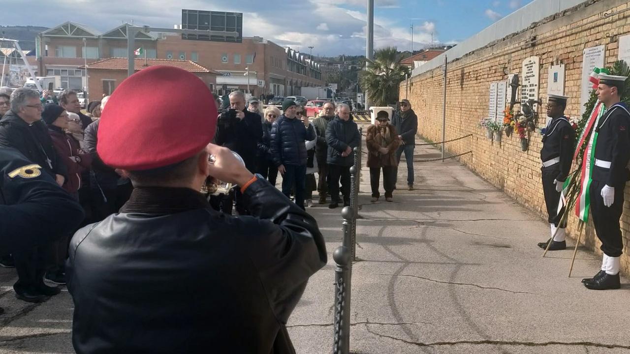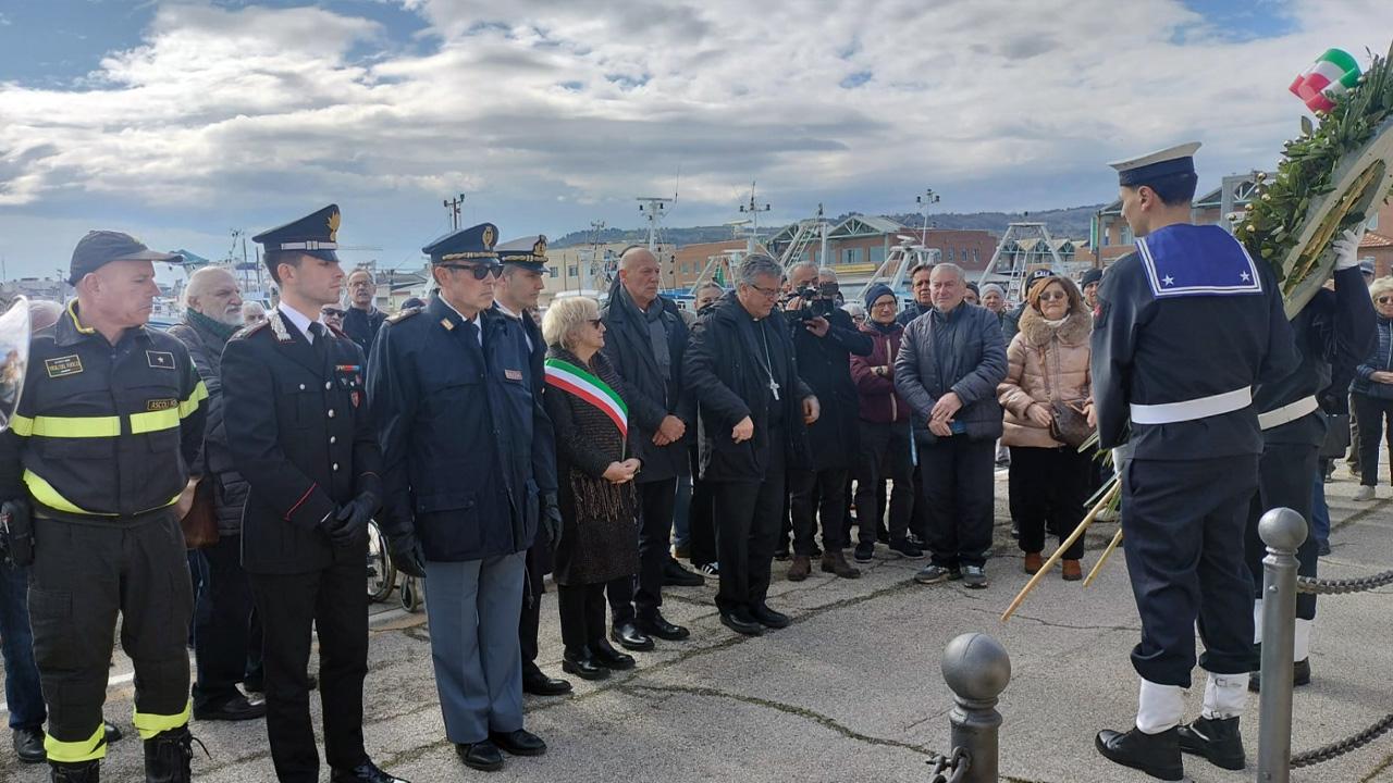 Quindi, sul muro paraonde del Molo nord “Rodi”, è stata deposta una corona sulla lapide che riporta i nomi delle vittime.