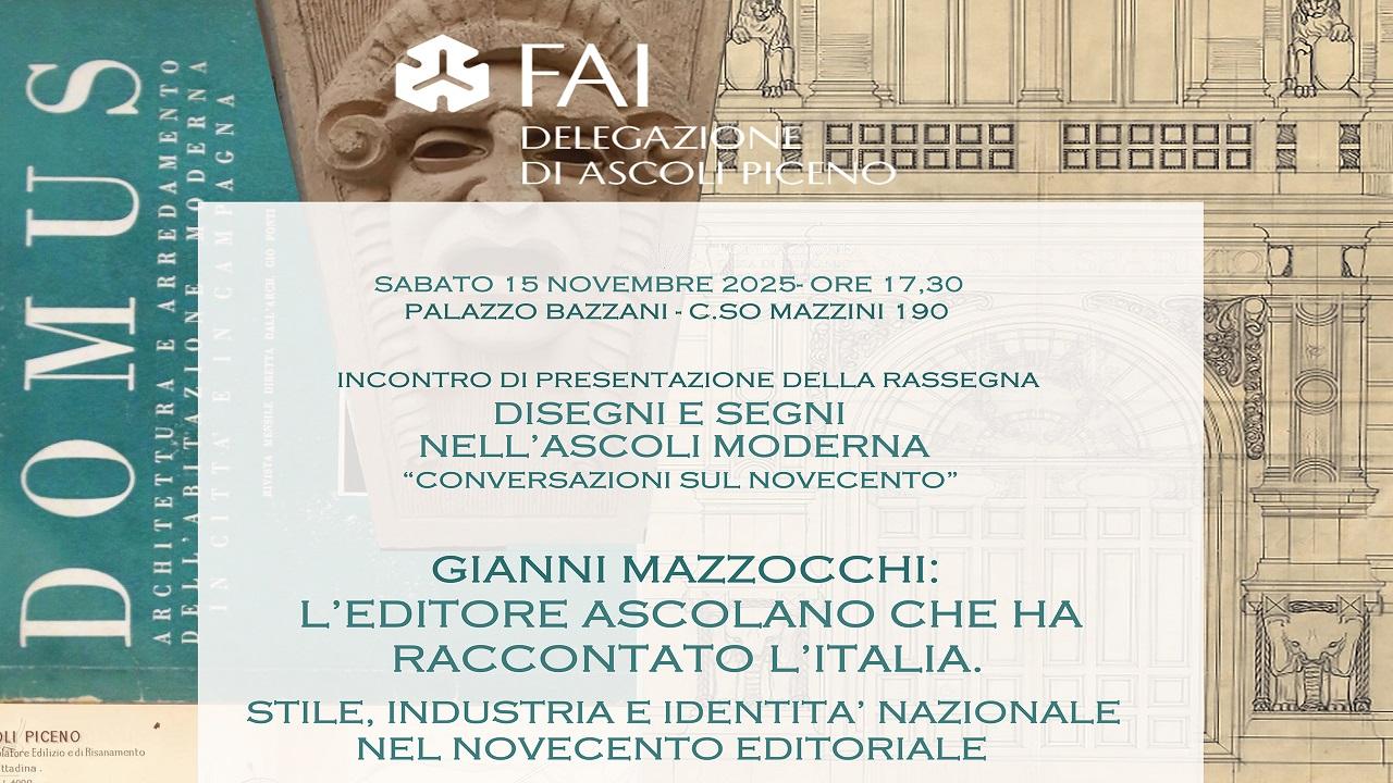 Link: https://fondoambiente.it/eventi/disegni-e-segni-nell-ascoli-moderna-gianni-mazzocchi-l-editore-ascolano-che-ha-raccontato-l-italia-stile-industria-e-identita-nazionale-nel-novecento-editoriale