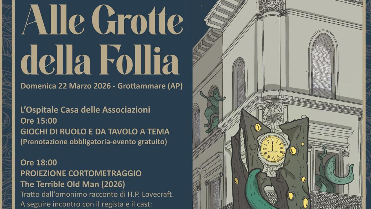 Domenica 22 marzo, dalle ore 15:00 alle 20:00 a Grottammare, presso l’Ospitale – Casa delle Associazioni , si terrà la seconda edizione di “Alle Grotte della Follia”, un pomeriggio culturale dedicato all’immaginario e all’eredità narrativa di H. P. Lovecraft, tra letteratura, cinema e gioco di ruolo.