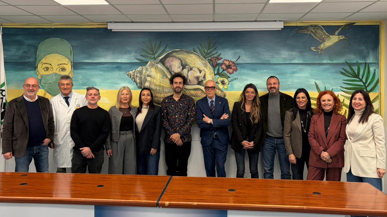 “L’opera raffigura una conchiglia che custodisce un neonato, potente simbolo di accoglienza e tutela della fragilità – spiega l’artista Calvaresi -. Alla destra, un’operatrice sanitaria rappresenta la presenza concreta e quotidiana della cura, mentre alla sinistra un gabbiano in volo richiama l’idea di speranza, libertà e futuro. Attraverso un linguaggio visivo delicato e accessibile, il murales trasmette un messaggio universale: la cura come atto di protezione della vita, valorizzando il ruolo dell’ospedale non solo come luogo di assistenza, ma anche di umanità e relazione. L’opera contribuisce a rendere la sala convegni uno spazio di incontro e riflessione, riconoscendo all’arte pubblica un ruolo attivo nel benessere emotivo di operatori sanitari, pazienti e visitatori”.