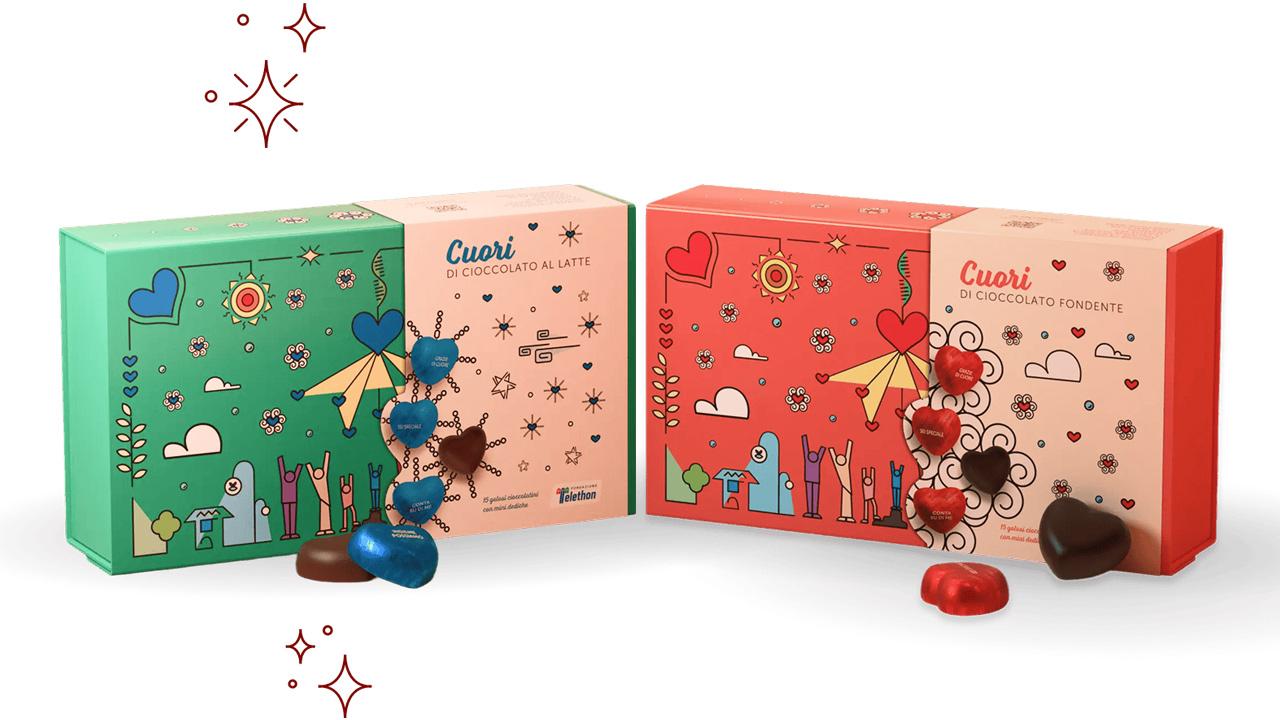 È possibile trovare i Cuori di cioccolato anche sullo shop online di Fondazione Telethon (shop.fondazionetelethon.it).