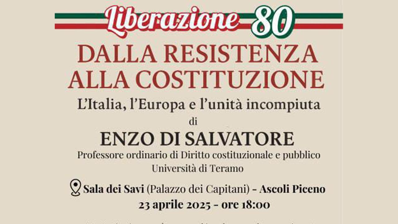 L’ottantesimo anniversario della Liberazione offre l’occasione per un dibattito che vada oltre la celebrazione storica, per interrogarsi su cosa significhi, oggi, essere antifascisti. Il professor Di Salvatore analizzerà come i partiti del tempo concepissero la Costituzione, quale idea avessero dell’Italia e dell’Europa in relazione all’esperienza della Resistenza e come queste grandi questioni restino oggi incompiute o minacciate.