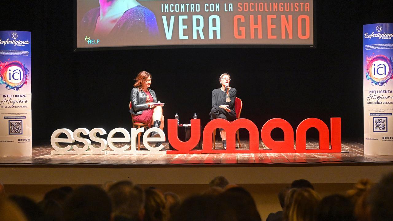 L’importanza di essere artigiani, anche della parola. Perché le parole “le usiamo, le lasciamo morire, le resuscitiamo, le possiamo modificare”. Insomma, plasmiamo il linguaggio con le nostre mani. È questo il senso dell’evento che Confartigianato Imprese Macerata-Ascoli Piceno-Fermo ha promosso con la nota sociolinguista Vera Gheno. L’incontro, dal titolo Il valore delle parole e organizzato in collaborazione con l’associazione HELP S.O.S. Salute e Famiglia, si è tenuto martedì 7 ottobre 2025 al teatro Annibal Caro di Civitanova Marche, con l’intento di esplorare il peso, la forza e l’eco di ogni vocabolo che pronunciamo ogni giorno. L’iniziativa si è inserita nel format Essere Umani, ideato dall’Associazione per aprire spazi di dialogo autentico e costruire ponti tra il mondo dell’impresa e quello della comunità, affrontando insieme i grandi temi della contemporaneità.