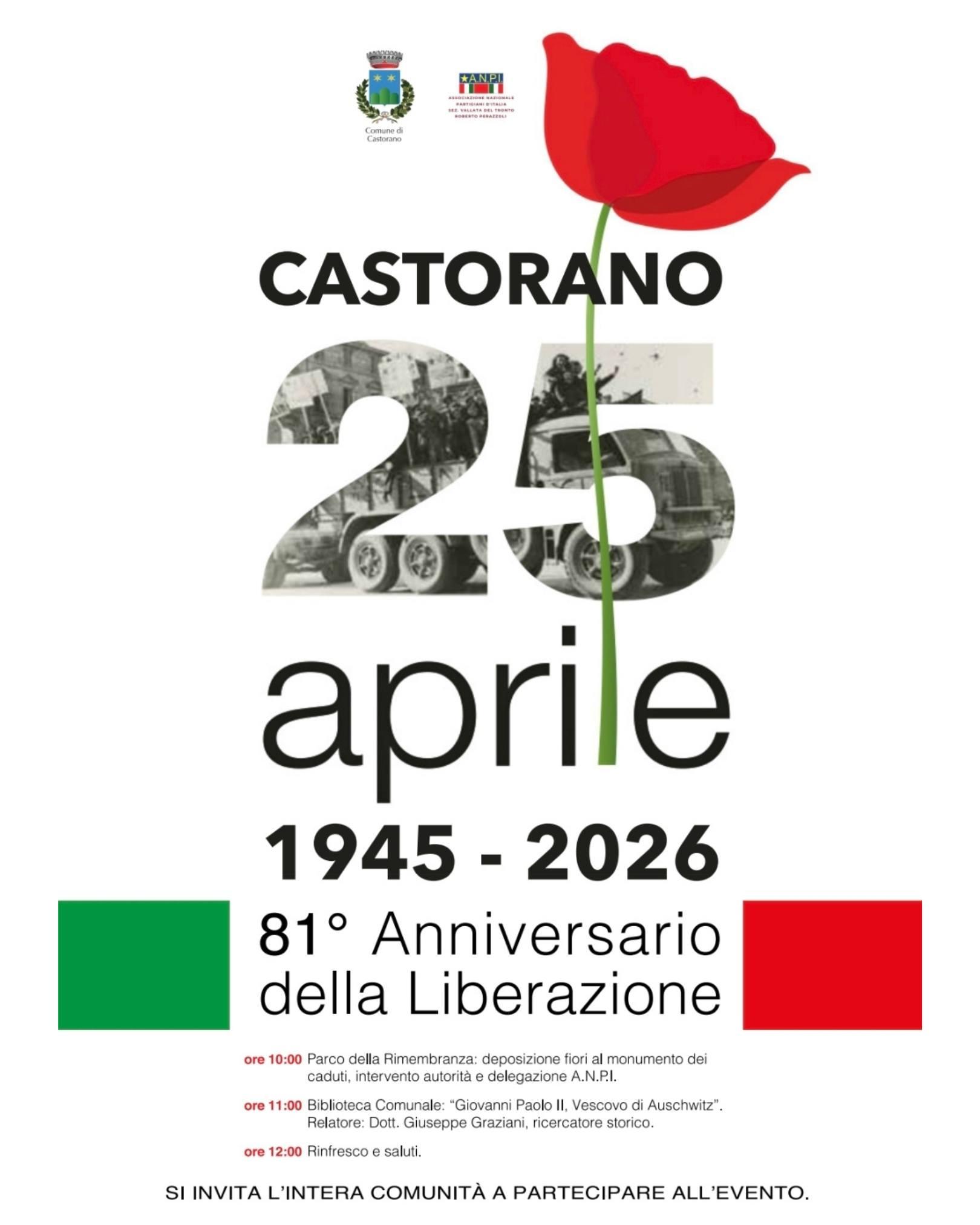 “Quest’anno abbiamo diversi motivi per festeggiare l’81esimo anniversario della Festa di Liberazione - le parole di presentazione dell’evento, da parte della sindaca Rossana Cicconi -, con il 25 Aprile che rappresenta per tutto il paese una data indimenticabile, dove si gettarono le basi per una rinascita dell’Italia dopo l’orrore della guerra. Una festa che noi come ogni anno vogliamo onorare e commemorare con il dovuto rispetto, nel ricordo di quanti diedero la propria vita per il futuro del nostro Paese. Un ricordo che quest’anno si unisce all’ottantesimo anniversario del diritto di voto alle donne, quale dovuto riconoscimento per l’enorme contributo sociale che abbiamo sempre dato, in tempi di guerra come di pace, fondamentale anche nella vittoria della Repubblica sulla Monarchia. Una festa, quella del 25 aprile, che a Castorano è molto sentita dai cittadini”.