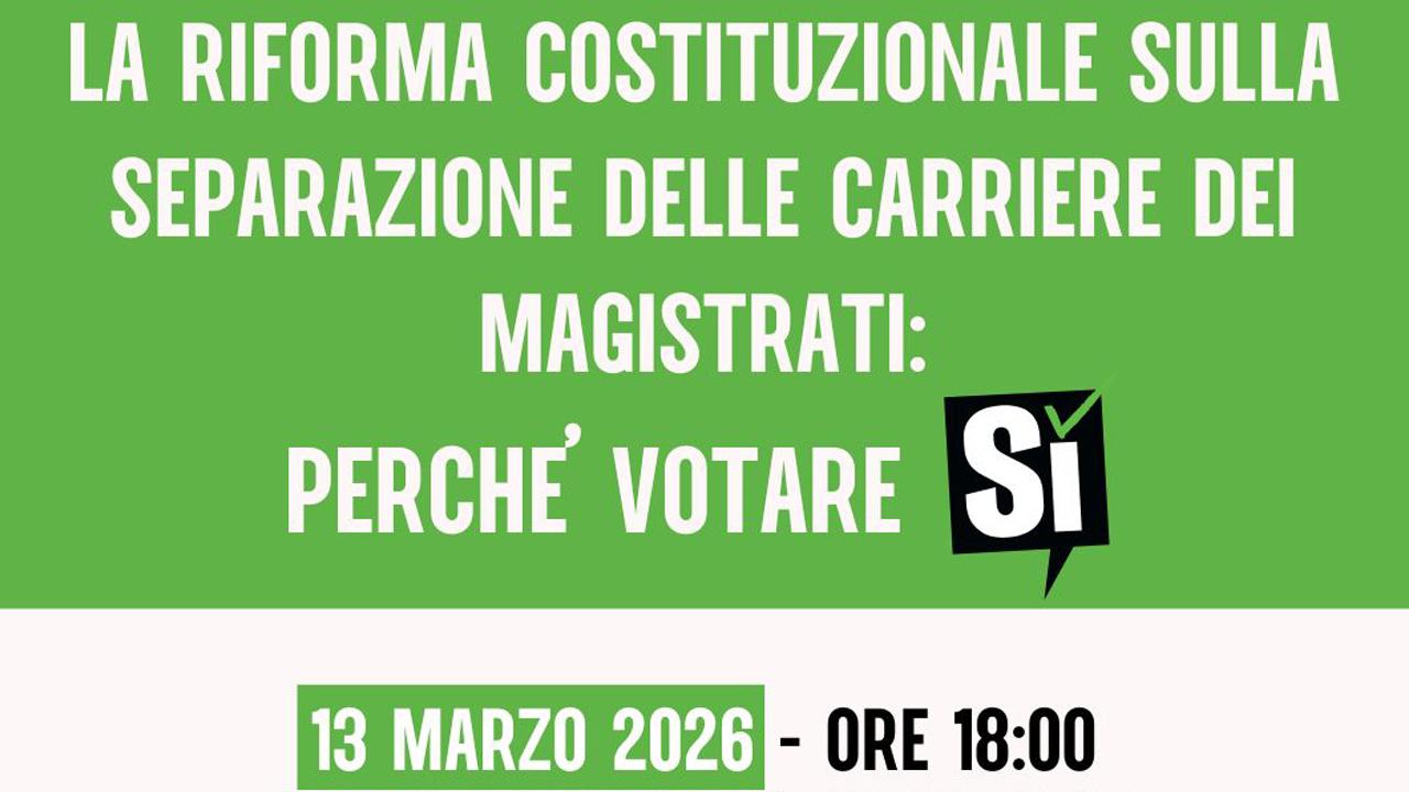 L’iniziativa, aperta alla cittadinanza, rientra nel ciclo di appuntamenti promossi dal comitato territoriale in vista del referendum costituzionale sulla riforma della giustizia previsto per il 22 e 23 marzo, con l’obiettivo di offrire occasioni di informazione e confronto sui contenuti della riforma.