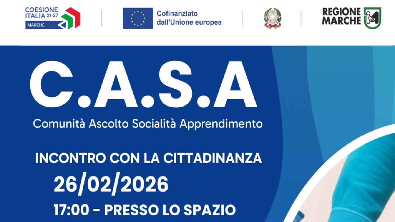 Il welfare di comunità mette radici a Grottammare: dopo la presentazione a livello territoriale, il progetto C.A.S.A. (Comunità, Ascolto, Socialità, Apprendimento) si svela ufficialmente alla cittadinanza il 26 febbraio, alle ore 17, presso lo Spazio JENGAB di via Promessi Sposi 2.