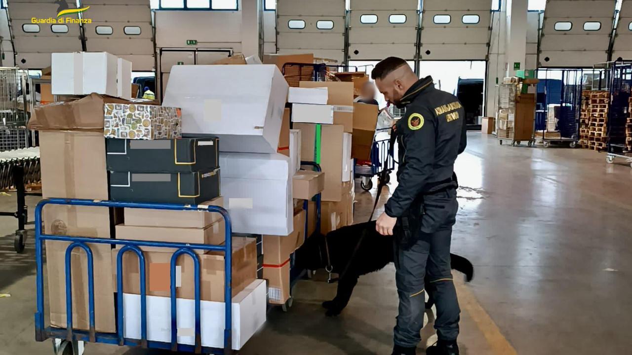 Nell’ambito dei servizi di prevenzione e contrasto ai traffici illeciti, con particolare riguardo a quelli riguardanti l’uso e lo spaccio di sostanze stupefacenti, ancora più potenziati a seguito di quanto concordato in sede di Comitato Provinciale per l’Ordine e la Sicurezza Pubblica, i militari della Compagnia di Civitanova Marche hanno dato esecuzione ad una serie di attività di controllo presso i magazzini di alcune società di spedizione. In particolare, i Finanzieri, con il costante ausilio delle unità cinofile in forza al Reparto, hanno sottoposto a controllo sommario esterno i colli dei beni giacenti, in attesa di essere consegnati ai destinatari.