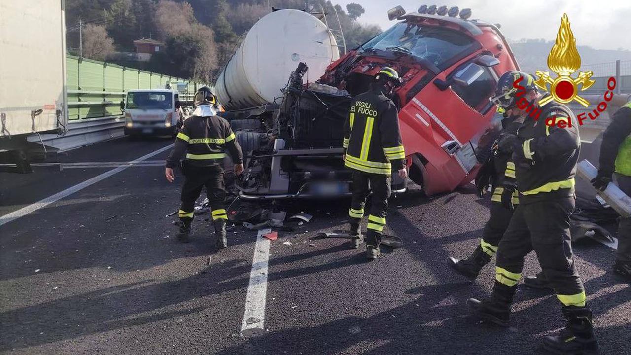territorio di Grottammare dove, nella corsia nord poco prima delle ore 15:00, si è verificato lo scontro tra due autoarticolati. Sul posto