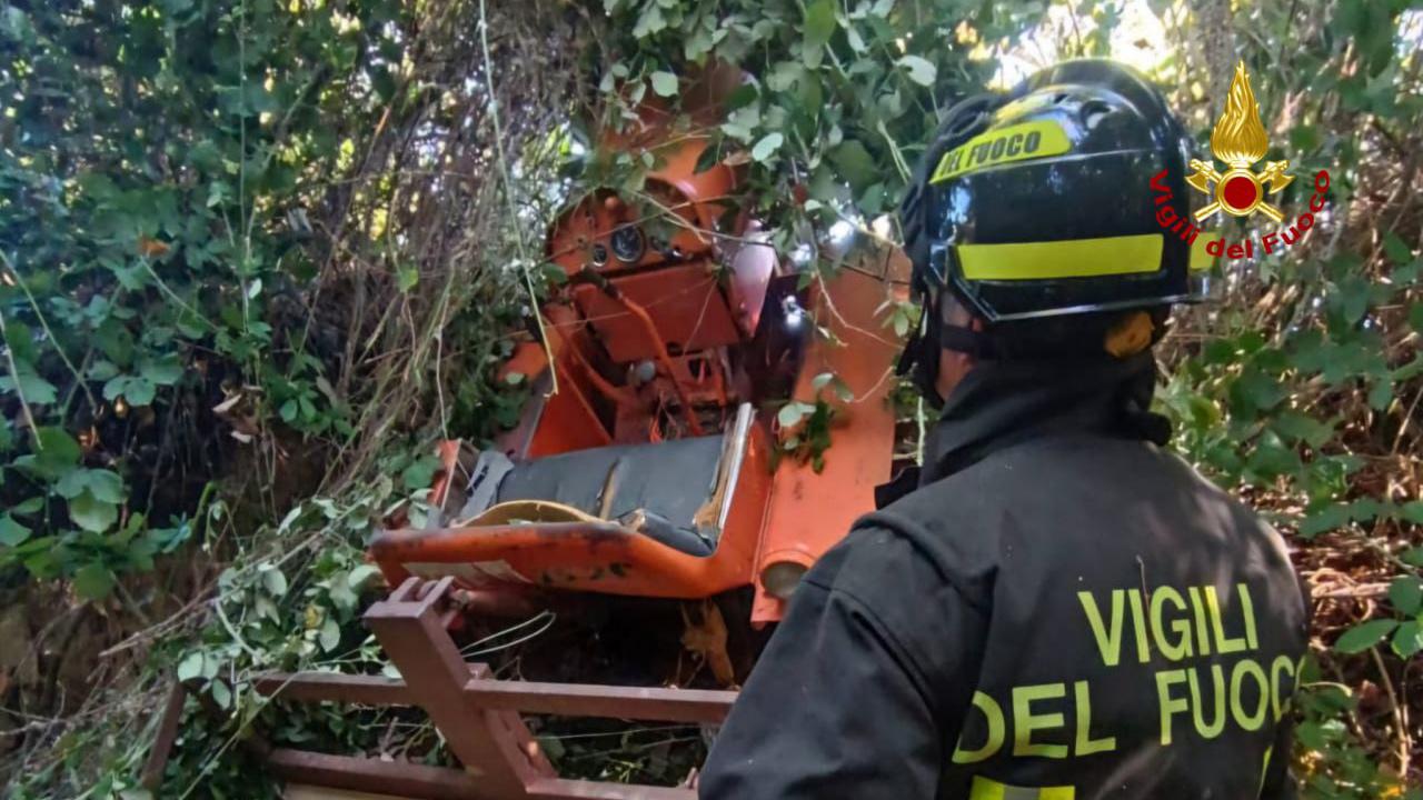 manovra, scivolava sul letto del torrente. Il mezzo agricolo, pur in