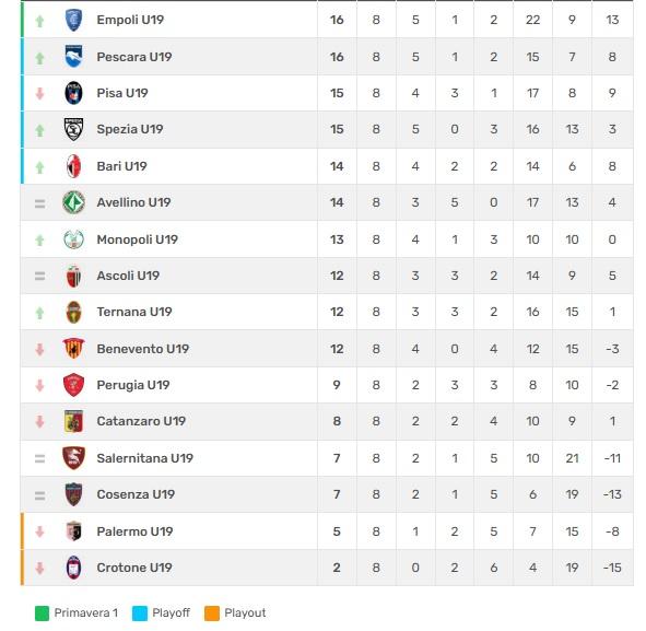 CLASSIFICA PRIMAVERA 2 GIRONE B