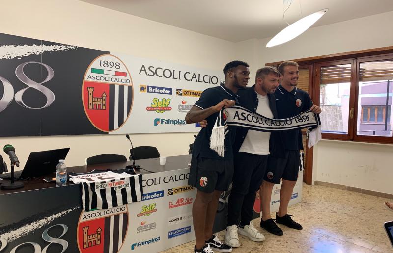 Il direttore sportivo dell'Ascoli Antonio Tesoro ha presentato nel primo pomeriggio di oggi, nella sala stampa della sede di Corso Vittorio Emanuele, i nuovi difensori centrali bianconeri Andreaw Gravillon (francese classe 1998) e Miguel De Alcantara (brasiliano classe 2000).