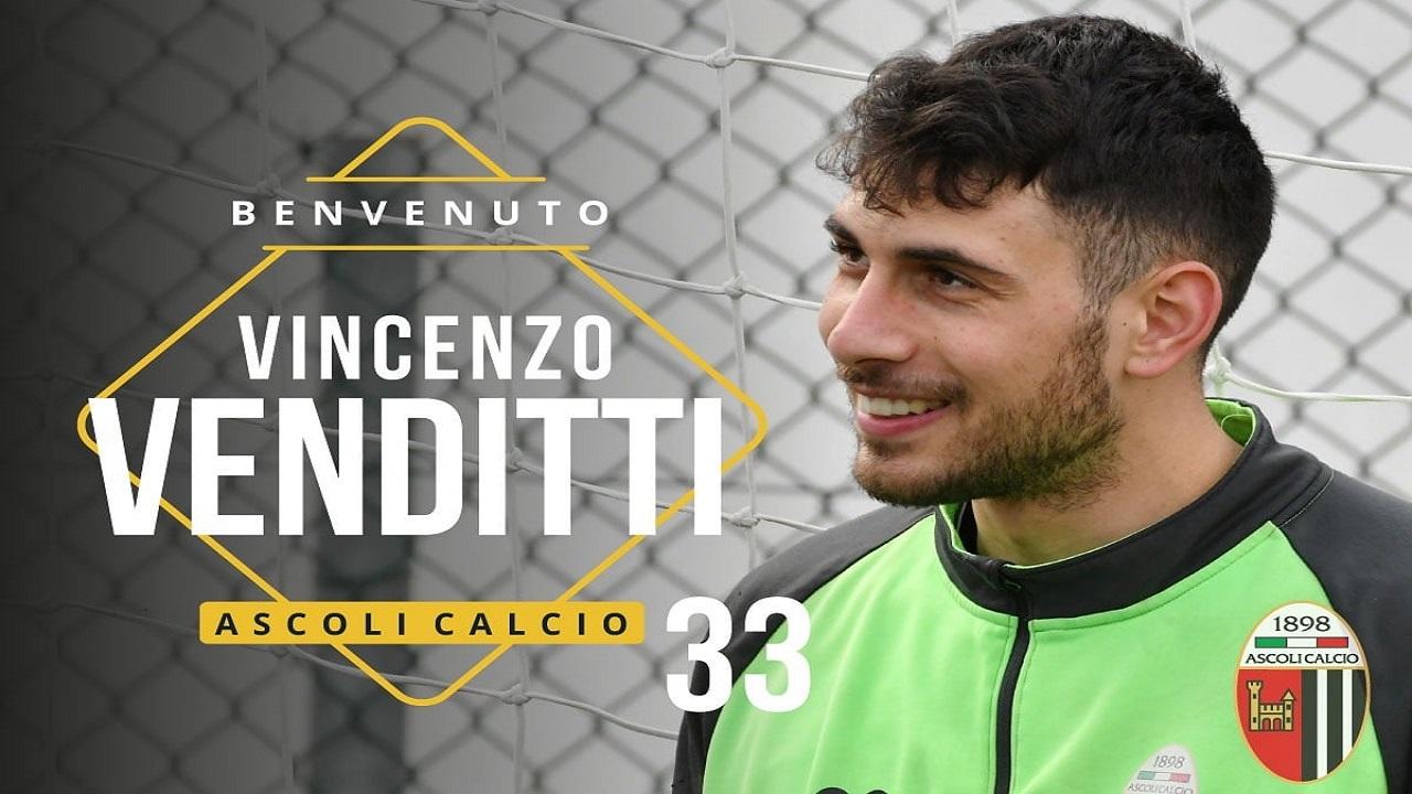 L'Ascoli tessera un nuovo calciatore per la seconda parte di stagione. Torna in bianconero il 23enne portiere Vincenzo Venditti, rimasto svincolato dopo l'ultima esperienza nelle file della Fermana. Andrà a completare il reparto degli estremi difensori a disposizione di mister Andrea Sottil insieme a Nicola Leali e Mouhamadou Sarr.