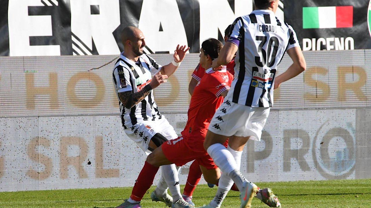 ASCOLI (4-2-3-1): Vitale 5.5; Alagna 6.5, Curado 7, Nicoletti 6.5, Guiebre 6 (80' Pagliai sv); Milanese 6 (68' Corradini 6), Damiani 6.5; Oviszach 6 (68' Silipo 6.5), Galuppini 6 (68' Rizzo Pinna 6.5), D'Uffizi 7; Gori 6 (80' Chakir 6). A disposizione: Barosi, Brzan, Rizzo, Cozzoli, Bando, Ndoj, Palazzino, Corazza. Allenatore: Agostinone (Tomei squalificato) 6.5