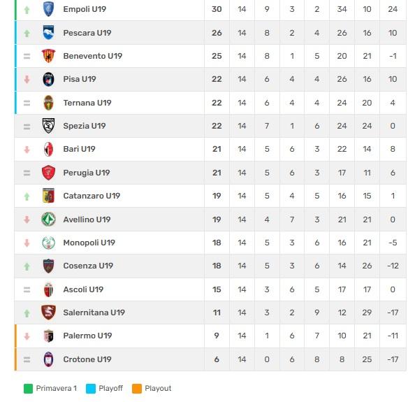 CLASSIFICA PRIMAVERA 2 GIRONE B