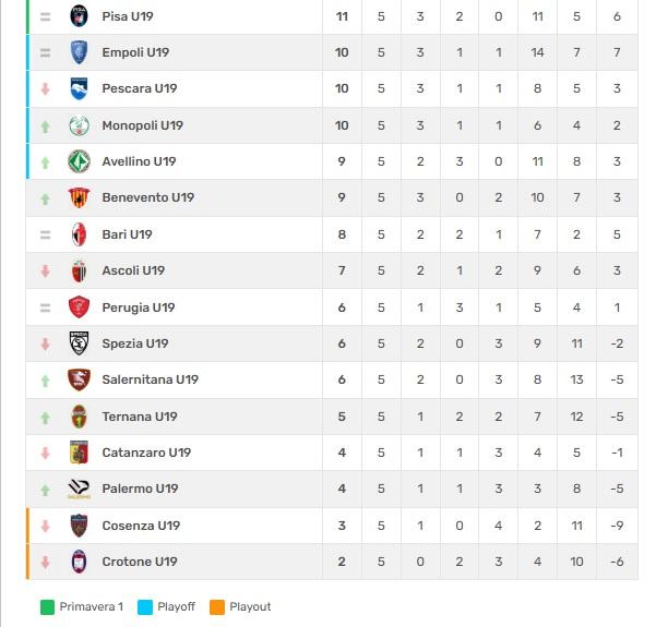 CLASSIFICA PRIMAVERA 2 GIRONE B