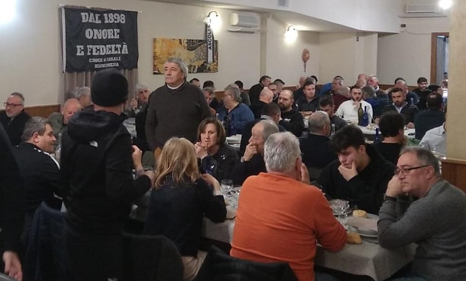 I massimi dirigenti dell'Ascoli Calcio, alla vigilia del match interno con il Carpi valevole per la 29esima giornata del girone B del campionato di Serie C, hanno partecipato stasera ad una cena ideata ed organizzata dal sindaco di Montegallo Sante Capanna al ristorante "La Diga" a Comunanza, in frazione Croce di Casale.