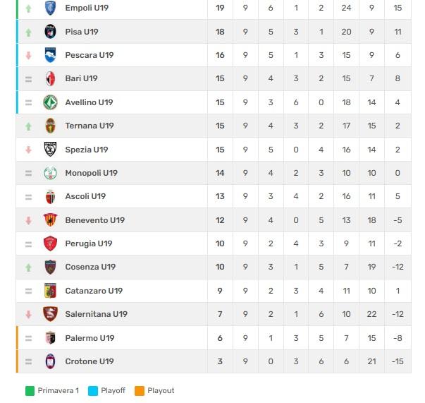 CLASSIFICA PRIMAVERA 2 GIRONE B
