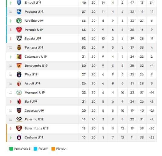 CLASSIFICA PRIMAVERA 2 GIRONE B