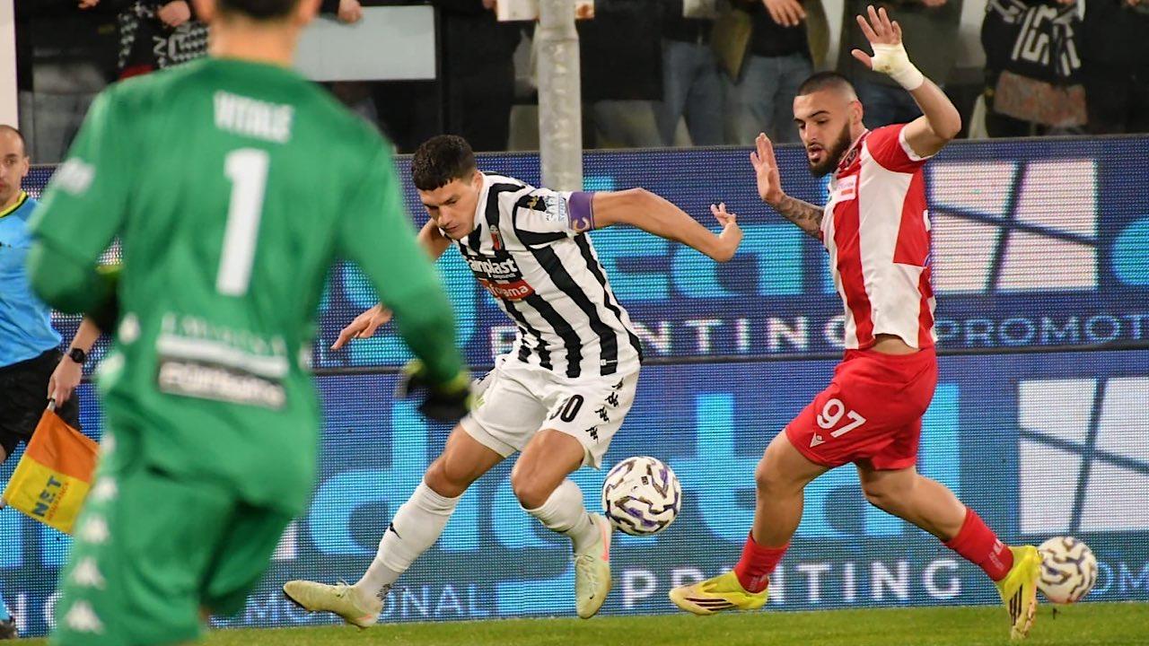 ASCOLI (4-2-3-1): Vitale 6.5; Alagna 6.5, Curado 6, Nicoletti 6, Guiebre 5.5 (81' Galuppini 6); Corradini 6 (81' Milanese 7), Damiani 7; Silipo 6, Rizzo Pinna 5.5 (68' Chakir 7), D'Uffizi 5.5; Gori 5.5 (68' Corazza 6.5). A disposizione: Barosi, Brzan, Rizzo, Pagliai, Menna, Bando, Ndoj, Palazzino, Del Sole, Oviszach. Allenatore: Tomei 7