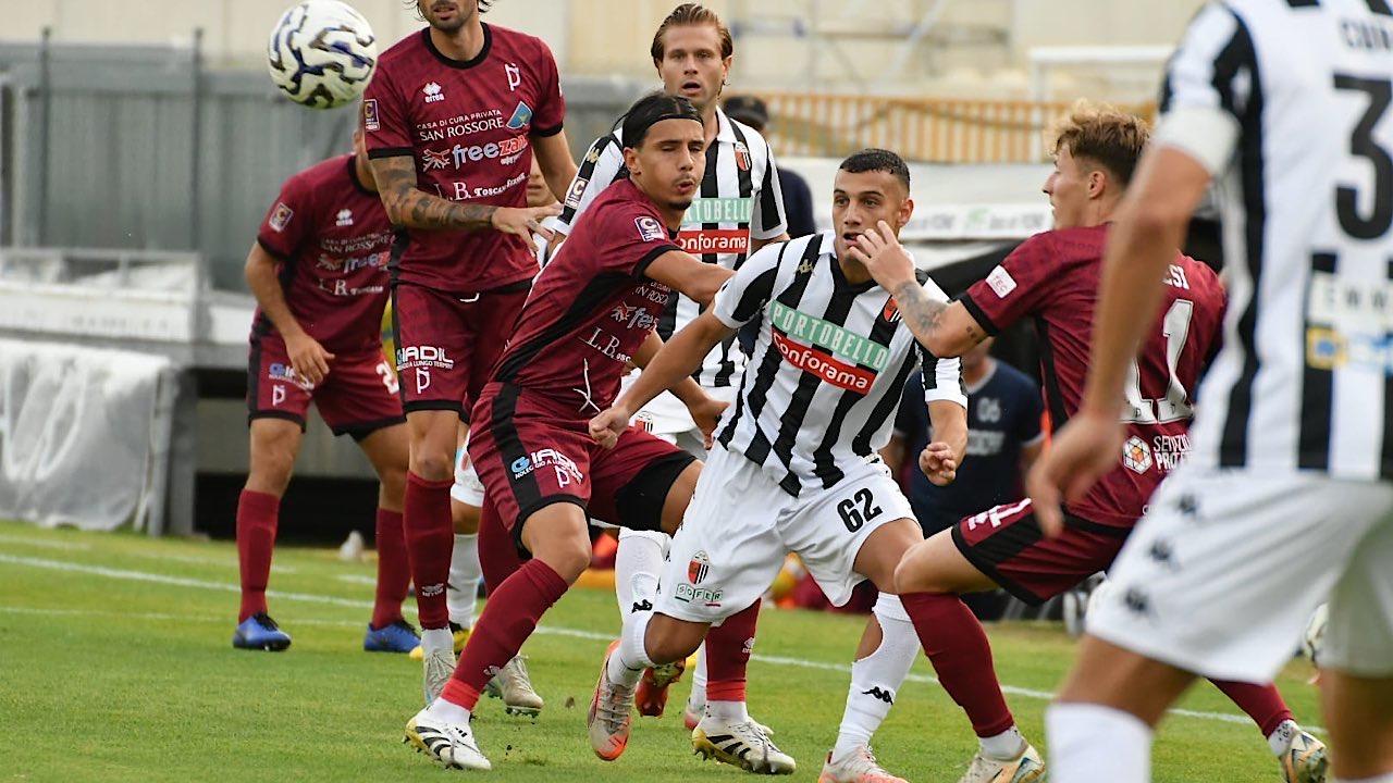 PONTEDERA (3-4-1-2): Biagini 5; Corradini 4, Pretato 4.5, Vona 4.5 (74' Paolieri 5.5); Bassanini 4.5, Manfredonia 4.5 (81' Milazzo sv), Faggi 5, Perretta 5; Scaccabarozzi 5 (58' Bucancil 5.5); Ianesi 5 (46' Andolfi 5.5), Vitali 5.5 (74' Tarantino 5.5). A disposizione: Raffi, Strada, Gueye, Pietrelli, Tempre, Coviello, Beghetto, Battimelli. Allenatore: Menichini 4