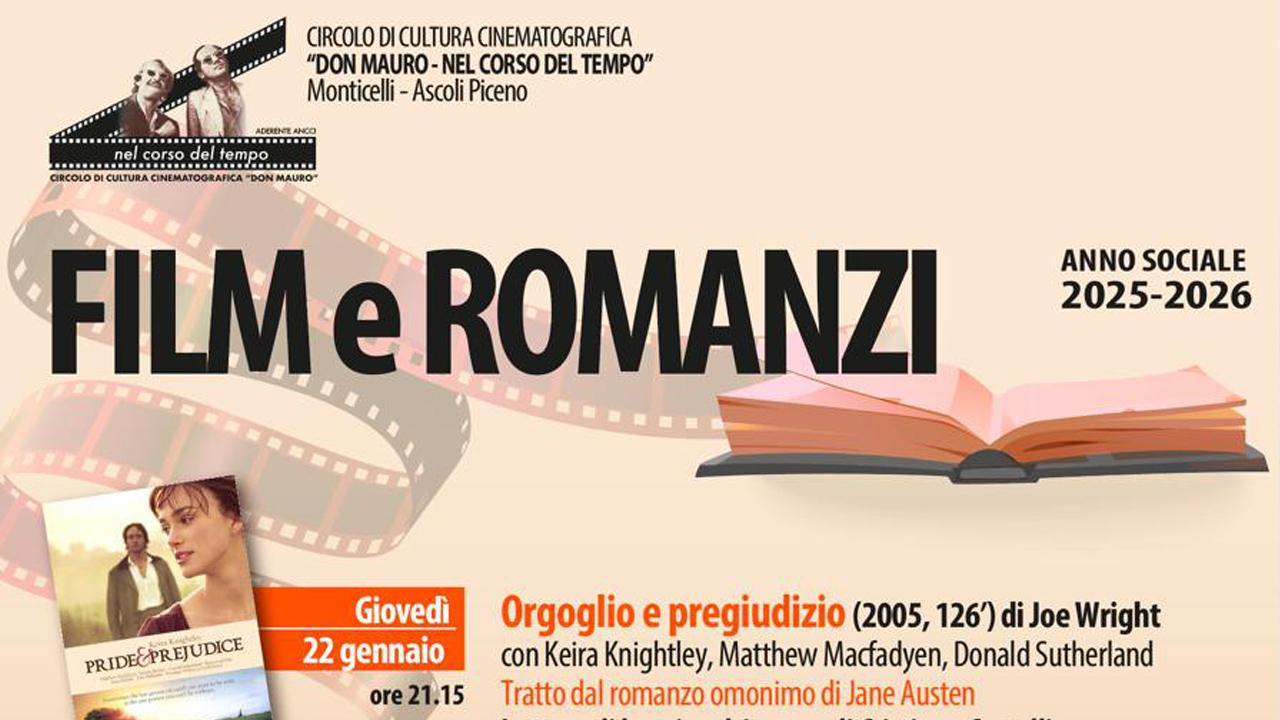 Ad Ascoli Piceno riparte per il secondo anno il ciclo “Film e romanzi” promosso dal Cinecircolo “Don Mauro – Nel corso del tempo” di Monticelli, dedicato ai grandi film tratti da celebri opere letterarie.