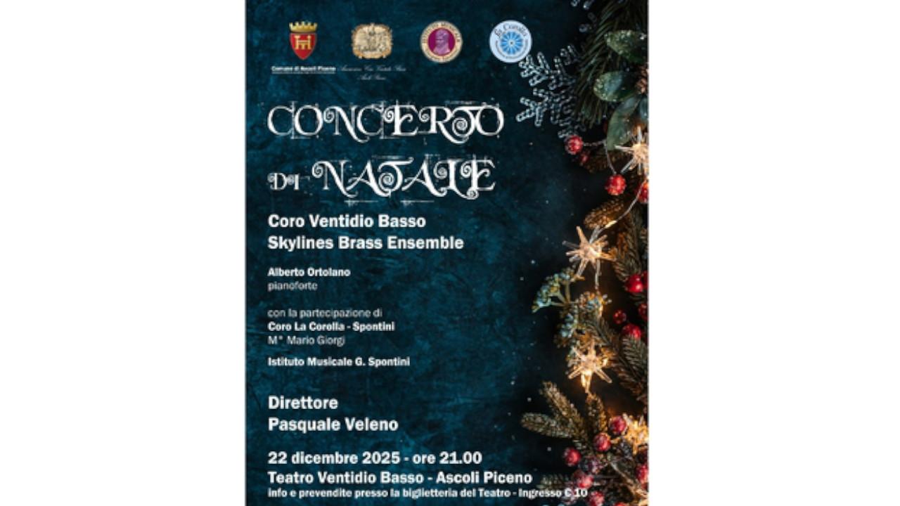 L’Associazione Coro Ventidio Basso, in collaborazione con l’Amministrazione Comunale di Ascoli Piceno, è lieta di annunciare il tradizionale Concerto di Natale, che si terrà lunedì 22 dicembre alle ore 21 presso il Teatro Ventidio Basso. Sul palco si esibiranno, oltre al Coro Ventidio Basso, il Coro di Voci Bianche La Corolla - Spontini, preparato dal Maestro Mario Giorgi e coadiuvato dagli insegnanti dell’Istituto Musicale G. Spontini di Ascoli Piceno, la “Skylines Brass Ensemble” e il pianista Alberto Ortolani. La direzione del concerto sarà affidata al Maestro Pasquale Veleno, direttore musicale del Coro Ventidio Basso. "Il Concerto di Natale è un appuntamento che ormai, da anni, rappresenta un momento importante di incontro e condivisione per tutta la nostra comunità. - dichiara il Sindaco Marco Fioravanti - Ringrazio l'Associazione Coro Ventidio Basso che, insieme alle altre realtà musicali della città, propone, come consuetudine, un programma ricco e coinvolgente, che ci permetterà di celebrare insieme le festività natalizie in un clima di gioia e serenità". Il programma musicale sarà incentrato sui canti della tradizione natalizia, con l’aggiunta di alcune sorprese che saranno svelate durante la serata. L’intento è quello di coinvolgere la cittadinanza in questo significativo momento dell’anno, proponendo i canti della nostra tradizione come augurio non solo di un sereno Natale 2025, ma anche di un prospero e fortunato 2026. Per informazioni dettagliate e per l’acquisto dei biglietti, si prega di rivolgersi alla biglietteria del Teatro Ventidio Basso. Vi aspettiamo numerosi per festeggiare insieme.