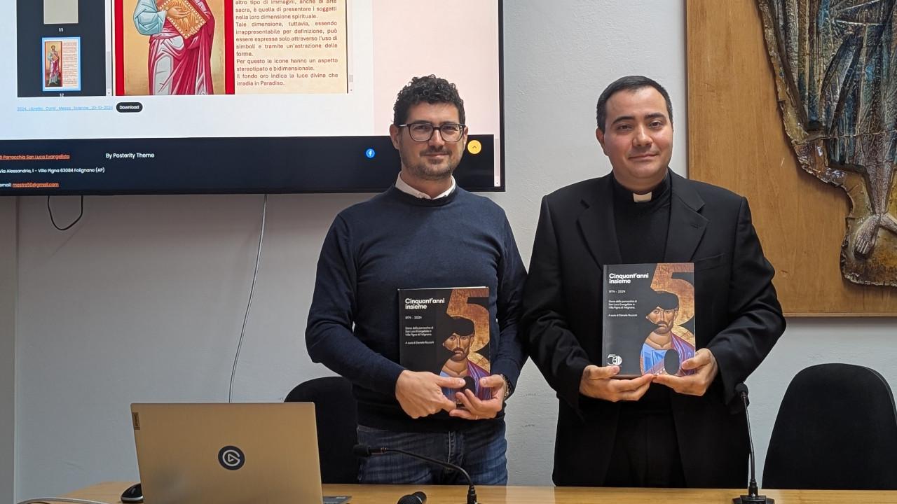 Presso la Sala Morgante di Casa Regina Apostolorum ad Ascoli Piceno sono stati presentati alla stampa la pubblicazione e la Mostra sui Cinquanta anni della parrocchia di San Luca Evangelista in Villa Pigna di Folignano (AP), istituita nel 1974. Don Francesco Fulvi, parroco di San Luca, ha ripercorso le tappe degli eventi che la parrocchia ha organizzato dal giugno dello scorso anno per celebrare, fare memoria e proiettarsi a un futuro di speranza, nello spirito giubilare: i tornei sportivi, la concelebrazione con il Vescovo Palmieri, l’incontro conviviale in piazza che ha coinvolto oltre trecento partecipanti, lo svelamento in chiesa della nuova icona dedicata al Santo, l’installazione del nuovo organo a canne, dono di una famiglia benefattrice e l’avvio delle ricerche storiche. Daniele Ricciotti, curatore della pubblicazione e della mostra fotografica, documentaria-multimediale, ha illustrato le caratteristiche del volume e le modalità di fruizione del percorso espositivo, allestito da sabato 29 novembre presso l’Oratorio di Villa Pigna: il libro, dall’elegante veste tipografica, racconta la storia della parrocchia di San Luca ed è suddivisa in quattro capitoli: “Il territorio di Villa Pigna, breve profilo storico” di Erminia Tosti Luna rievoca le origini millenarie del sito di “Pigna”, rintracciato presso l’archivio di Stato di Ascoli Piceno, la presenza dei primi agglomerati fino al boom edilizio degli anni 70 e 80 a oggi; “Quando nasce una parrocchia, viaggio nelle carte d’archivio e nella memoria” del curatore del volume, Daniele Ricciotti, grazie alla cospicua documentazione, ricostruisce la vita della parrocchia in parallelo con la biografia del primo parroco, don Franco Petrucci, fino al 2024; “Il complesso parrocchiale San Luca Evangelista. La chiesa dell’abbraccio” di Adriana Cipollini e Michele Picciolo, progettisti della nuova chiesa parrocchiale edificata tra il 2000 e il 2001, racconta la scelta progettuale, le caratteristiche architettoniche, nonché l’utilizzo dei materiali che hanno reso unica la nuova costruzione; "Documenti": è il capitolo in cui sono stati raccolti i materiali utilizzati nella stesura del lavoro, le testimonianze dei parrocchiani, i discorsi, le omelie e le lettere di don Franco Petrucci. Il volume si chiude con una testimonianza dell’attuale parroco, don Francesco Fulvi e una cronologia completa con gli avvenimenti salienti di cinquanta anni di storia della comunità. Don Francesco Fulvi e Daniele Ricciotti hanno ringraziato il Comune di Folignano per il generoso contributo che ha permesso la stampa di numerose copie che verranno distribuite gratuitamente a ogni famiglia di Villa Pigna. Nel nuovo sito mostra50.altervista.it è possibile visionare l’intero percorso espositivo, arricchito dal corredo multimediale che rende l’esperienza più approfondita e coinvolgente. L’inaugurazione del busto dedicato a don Franco Petrucci, per volontà del Comune di Folignano di concerto con la sua famiglia e la parrocchia, la presentazione della pubblicazione e l’apertura ufficiale della mostra avverranno sabato 29 novembre a Villa Pigna, nei pressi dell’Oratorio dalle ore 15.00.