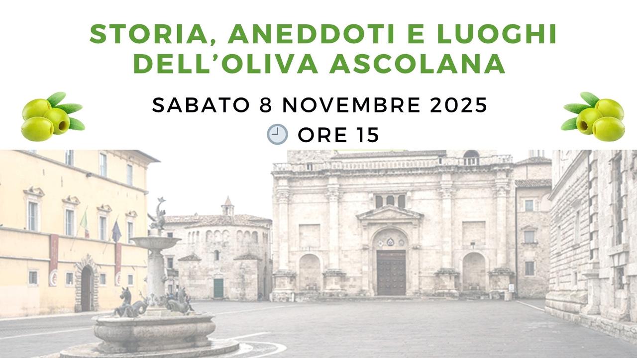 L’appuntamento è alle 15 in Piazza Arringo (davanti alla cattedrale) e l’iniziativa ”Storia, aneddoti e luoghi dell’oliva ascolana” rientra nel progetto “Camminata dei musei del gusto” che è promosso da U.S. Acli provinciale Aps. La partecipazione è gratuita, è previsto un tetto massimo di 50 persone. Il percorso, della durata di 2 ore e mezza circa, permetterà di conoscere meglio la città di Ascoli, il suo centro storico e i suoi luoghi più caratteristici attraverso la narrazione della storia dell’oliva ascolana nei secoli.