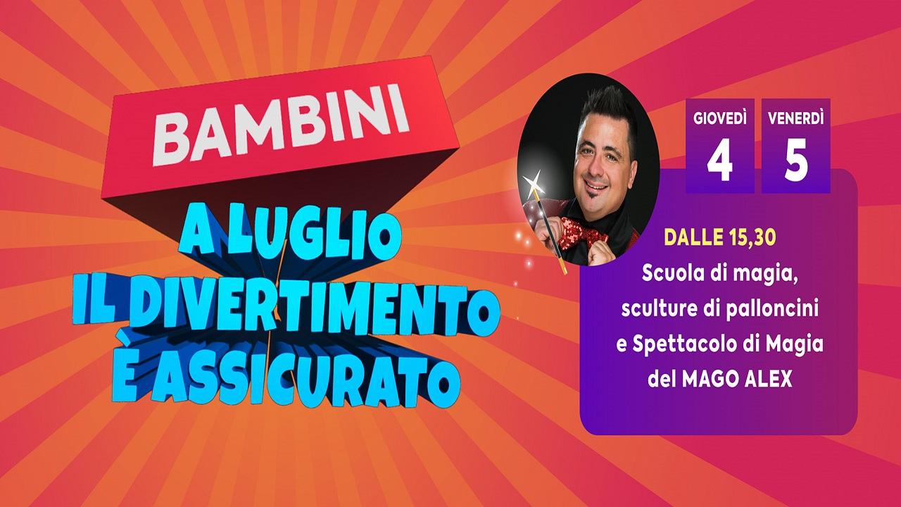Tutti i fine settimana del mese, in Galleria saranno organizzate delle animazioni per bambini: si comincia Giovedì 4 e Venerdì 5 con lo spettacolo e la scuola di magia del mago Alex.