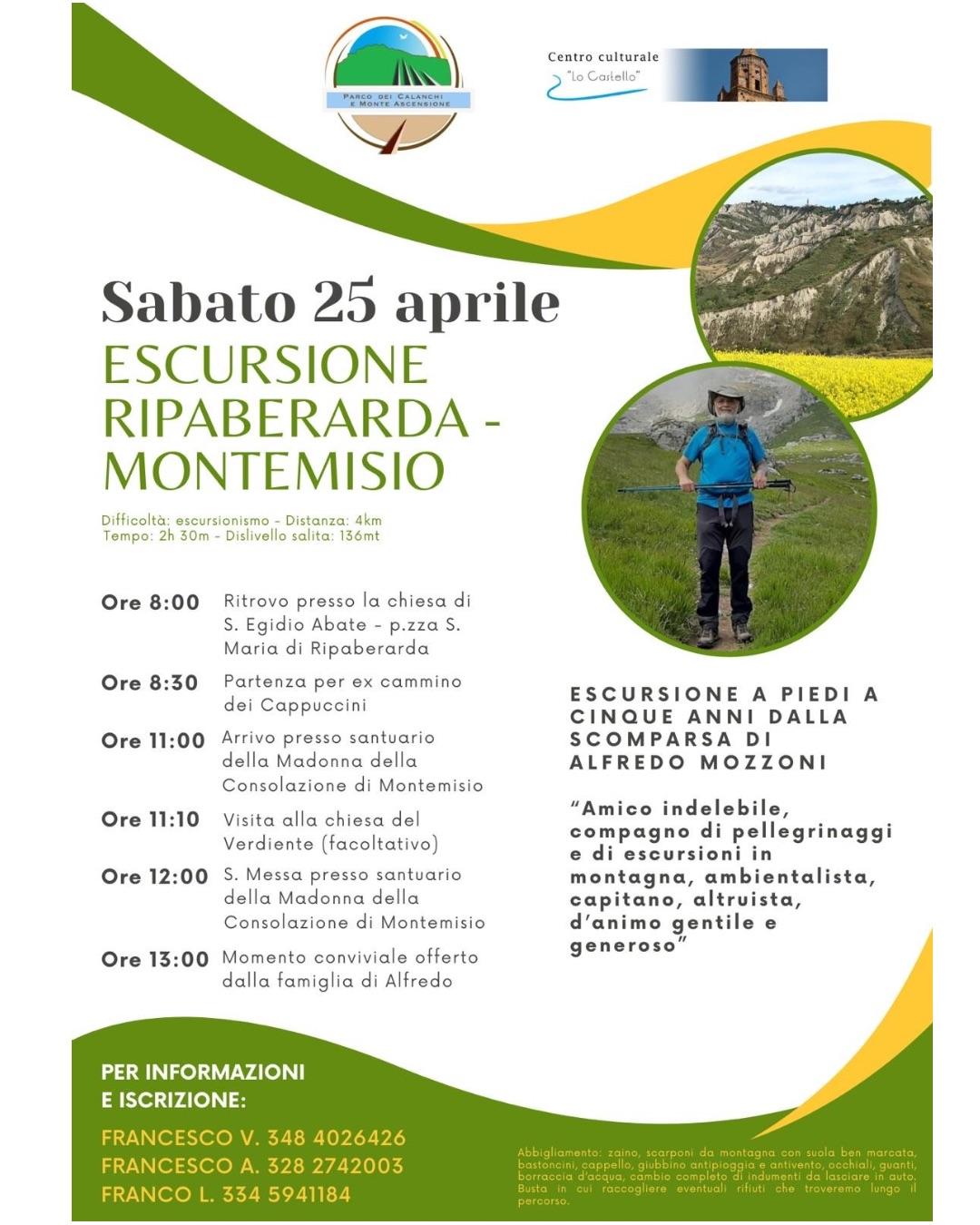 Sabato 25 Aprile il Centro Culturale Lo Castello e il Parco dei Calanchi e del Monte Ascensione invitano la comunità a una giornata speciale: un’escursione naturalistica da Ripaberarda a Montemisio, un percorso che unisce natura, memoria e spiritualità.