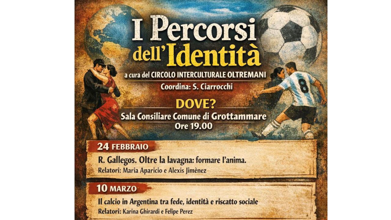 Prenderà il via il 24 febbraio nella Sala Consiliare, il primo appuntamento del ciclo “I Percorsi dell’Identità”. L’iniziativa è curata dal Circolo Interculturale Oltremani e coordinata dal prof. Saverio Ciarrocchi. Gli appuntamenti sono quattro a partire dal 24 febbraio. La partecipazione è aperta a tutti. Il progetto opera in sinergia con il corso di Italiano per stranieri organizzato da Oltremani a Palazzo Ravenna ed in corso fino al 29 aprile. Il ciclo, infatti, si inquadra in uno spazio di cittadinanza attiva a doppia valenza: un esercizio pratico di comunicazione per i corsisti e un’occasione di approfondimento culturale per l'intera comunità. Gli incontri si terranno sempre alle ore 19, secondo il calendario che segue: 24 febbraio: “R. Gallegos. Oltre la lavagna: formare l’anima”, con Maria Aparicio e Alexis Jimènez. 10 marzo: “Il calcio in Argentina tra fede, identità e riscatto sociale”, con Karina Ghirardi e Felipe Perez. 24 marzo: “Il Tango argentino. L’identità in disaccordo”, con Maria Elsa Medina e Daniel Leonardo Pittari. 21 aprile: “La festa come identità. La condizione della donna. Il labirinto come ricerca di una identità”, con Erika Almaraz. “Sosteniamo con convinzione queste azioni sistemiche perché l’integrazione non si esaurisce in una lezione in aula”, sottolinea la consigliera delegata all’Intercultura, Martina Sciarroni. “Il valore del progetto risiede proprio nella connessione tra apprendimento e partecipazione sociale. Creare spazi di scambio culturale significa trasformare la teoria in gesti concreti di cittadinanza, consolidando un modello di accoglienza che è, prima di tutto, un impegno quotidiano per la pace”.
