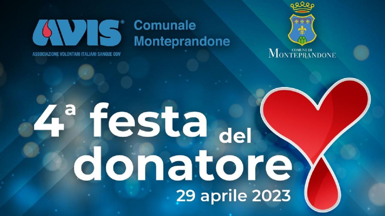 Sabato 29 Aprile l’Avis di Monteprandone, con il patrocinio del Comune di Monteprandone, ripropone la Festa del Donatore, giunta alla sua quarta edizione.