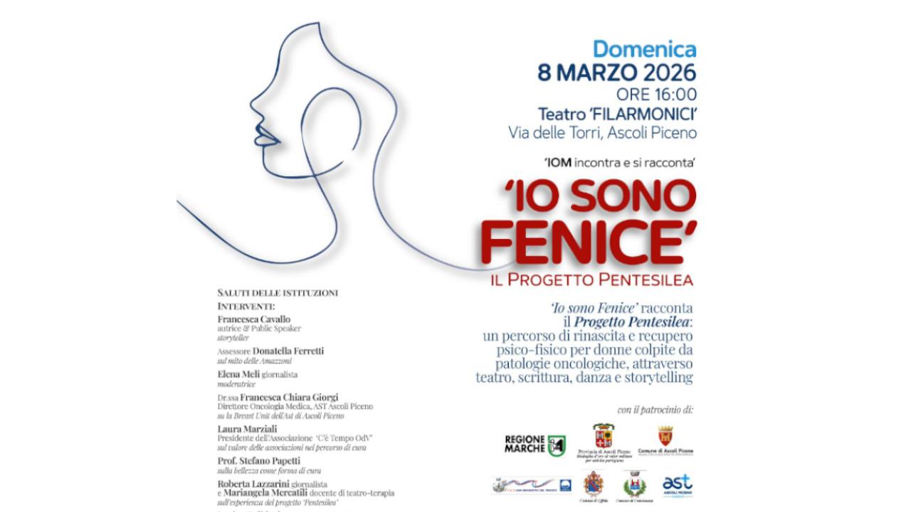 In occasione della Giornata Internazionale della Donna, domenica 8 marzo alle ore 16, il Teatro Filarmonici ospita “Lo IOM incontra e si racconta: Io sono Fenice”, il secondo evento del Trentennale dello IOM Ascoli Piceno OdV. Un appuntamento speciale per raccontare un’esperienza lunga 27 anni fatta di accoglienza, cura, condivisione e rinascita: quella del progetto Pentesilea. L’iniziativa rappresenta un momento di incontro con la comunità per ripercorrere insieme la storia di un progetto innovativo nato nel 1999, finanziato nei primi due anni dalla Presidenza del Consiglio dei Ministri – Dipartimento Affari Sociali, e diventato nel tempo un punto di riferimento per centinaia di donne. Attraverso laboratori esperienziali di arte-terapia e grazie al supporto fondamentale della psico-oncologa, circa 450 donne con pregressa patologia tumorale, hanno avuto la possibilità di rimettersi in gioco, uscire dall’isolamento, ritrovare fiducia in se stesse e aprirsi a nuove prospettive di vita. Il progetto Pentesilea nasce dalla consapevolezza che la cura non passa esclusivamente attraverso la medicina – che resta imprescindibile – ma deve considerare la persona nella sua interezza: dimensione fisica, psicologica e spirituale. Ad aprire l’evento sarà una protagonista d’eccezione: Francesca Cavallo, autrice di bestsellers conosciuta a livello internazionale, che porterà sul palco un racconto potente dedicato alla forza e al potere della rinascita femminile. Il suo intervento rappresenta uno dei momenti centrali, pensato per coinvolgere ed ispirare il pubblico presente. Durante l’incontro verrà sottolineato il ruolo fondamentale delle associazioni di volontariato, che affiancano le donne nel complesso percorso di guarigione e reinserimento sociale. Un impegno che rappresenta non solo un valore umano e sociale, ma anche economico: attraverso attività e iniziative che favoriscono il benessere e accelerano i processi di recupero, il terzo settore contribuisce concretamente a ridurre il carico sulla sanità pubblica. L’efficacia di tale progettualità ha spinto lo IOM ad inserire i laboratori anche nel progetto regionale Ninfee: la forza della rinascita, la forza nella resistenza, volto al reinserimento sociale e lavorativo di donne con pregressa patologia tumorale. Accanto ai percorsi di empowerment e consulenza, il progetto propone numerosi laboratori finalizzati a sostenere la persona a 360 gradi: dalla conoscenza dell’Intelligenza Artificiale alla danza terapia, dal teatro terapia ai laboratori di estetica oncologica. “Lo IOM incontra e si racconta: Io sono Fenice” sarà dunque non solo un momento rievocativo, ma un’occasione per condividere esperienze, testimonianze e prospettive future, riaffermando il valore della comunità, della solidarietà e della cura intesa come percorso umano oltre che sanitario. Ingresso libero previa registrazione su HYPERLINK "http://www.eventbrite.it" www.eventbrite.it Per informazioni: IOM Ascoli Piceno OdV 0736.780849 – HYPERLINK "mailto:iom.ap@sanita.marche.it" iom.ap@sanita.marche.it