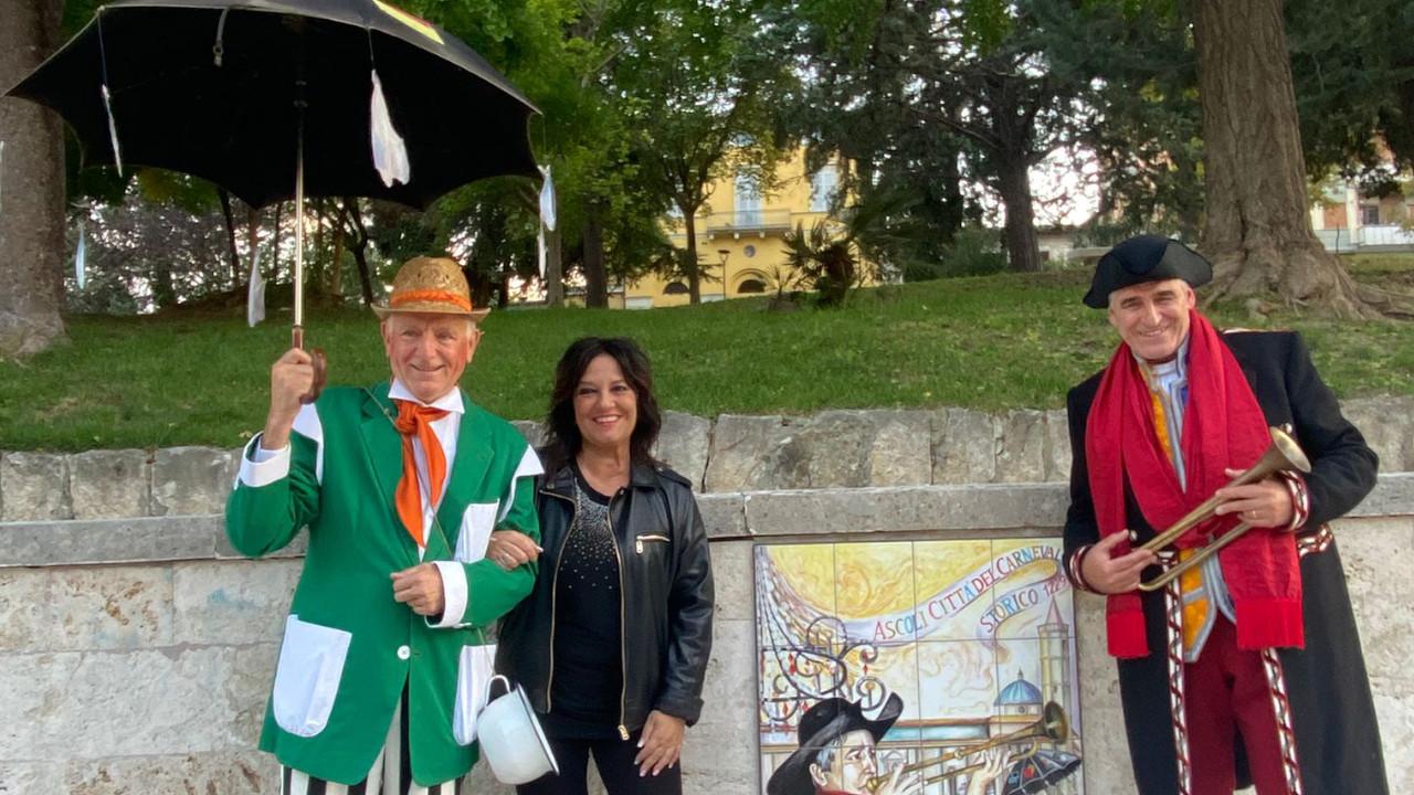 A margine di questa iniziativa, le due maschere tradizionali Buonumor Favorito e Lu Sfrigne hanno voluto farsi immortalare davanti all’opera dedicata proprio al Carnevale realizzata dall’artista ceramista Barbara Tomassini e installata lungo corso Vittorio Emanuele ad Ascoli.