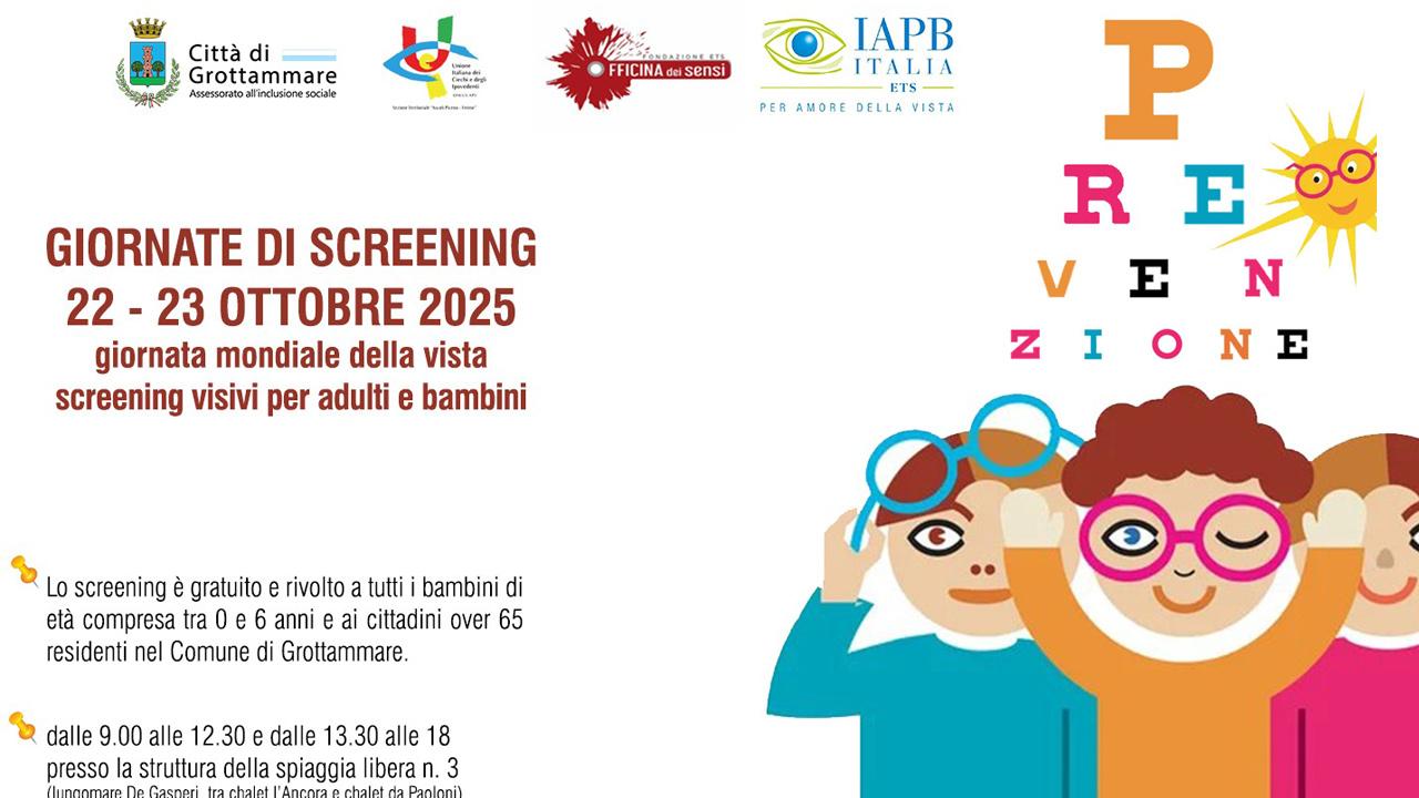 La Fondazione Officina dei Sensi, con il sostegno del Comune di Grottammare, rinnova anche nel 2025 l’impegno avviato lo scorso anno, proponendo Il 22 e il 23 ottobre, dalle 9.00 alle 12.30 e dalle 13.30 alle 18.00, presso la struttura della spiaggia libera n.3 sul lungomare De Gasperi, due giornate dedicate alla prevenzione visiva con screening gratuiti rivolti agli over 65 e ai bambini di età compresa da 0 a 6 anni residenti nel Comune di Grottammare.