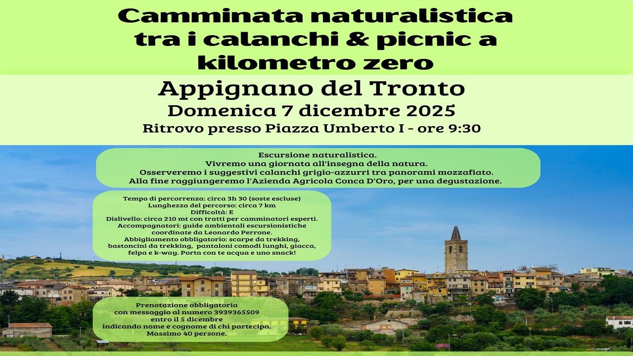 L’iniziativa è organizzata dall’amministrazione comunale in collaborazione con U.S. Acli provinciale Aps e con il sostegno della Regione Marche, nell’ambito del bando “Iniziative per il benessere e la qualità della vita” annualità 2025. Il ritrovo dei partecipanti è previsto alle 9,30 in Piazza Umberto I e da lì si partirà per un percorso di circa sette chilometri della durata di tre ore e mezza circa, escluse le soste. La lunghezza del percorso è di circa 7 chilometri con un dislivello di 210 metri circa. Si tratta di un percorso escursionistico. I promotori sottolineano come l’iniziativa sia pensata per vivere una giornata all’insegna della natura con possibilità di osservare i suggestivi calanchi grigio azzurri. Previsto anche un “Picnic a kilometro zero” presso l’azienda agricola “Conca d’Oro”.