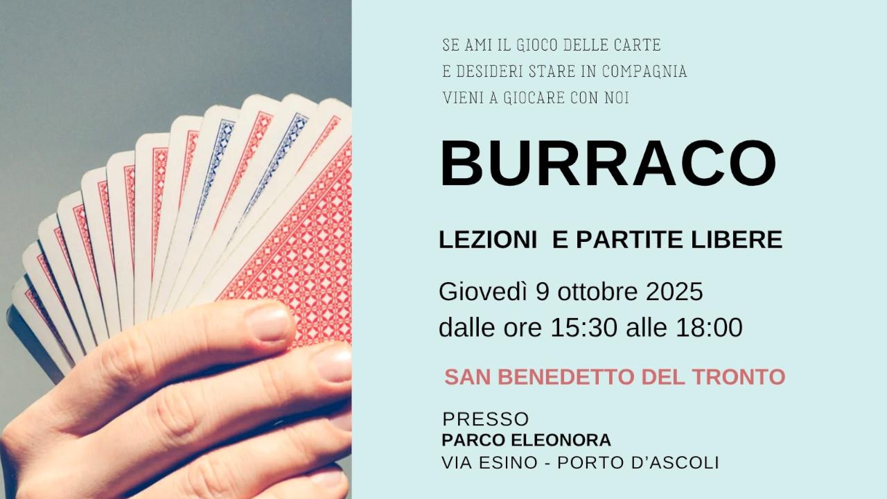 Nel territorio comunale proseguono le attività del progetto “BTA – Benessere nella terza età”, promosso da U.S. Acli provinciale APS con il supporto dell’Assessorato alle Politiche Sociali del Comune di San Benedetto del Tronto, in collaborazione con le associazioni Truentum APS e Il Marcuzzo. Giovedì 9 ottobre, dalle 15:30 alle 18, presso il Parco Eleonora di Porto d’Ascoli (via Esino, San Benedetto del Tronto), si terranno lezioni e partite libere di burraco. L’iniziativa è aperta sia a chi già conosce il gioco, sia a chi desidera impararne le regole di base, grazie alla presenza di un istruttore qualificato. Per informazioni contattare tramite messaggio il numero 3495711408.