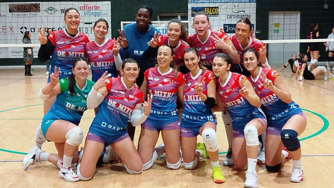 Vittoria in rimonta per la De Mitri Volley Angels Lab nella gara casalinga contro il Team 80 Gabicce-Gradara, valevole per il campionato di serie B2 femminile. Alla Tensostatica di Campiglione di Fermo finisce 3-2 per le rossoblù di casa (19-25 28-26 24-26 25-20 15-10), al termine di una gara tosta e impegnativa con entrambe le squadre che, per motivi opposti, erano alla ricerca di punti importanti. Al termine chi ha beneficiato di più dal raccolto è stata la squadra di coach Galli che ha conquistato un punto d’oro per la propria classifica, mentre Tiberi e compagne hanno dovuto cedere la seconda posizione in classifica a Reggio Emilia, con la capolista Modena che ha allungato di un punto in vetta. «È importante restare nella zona playoff» hanno detto in casa De Mitri, alla vigilia dello scontro diretto proprio in casa della prima della classe.