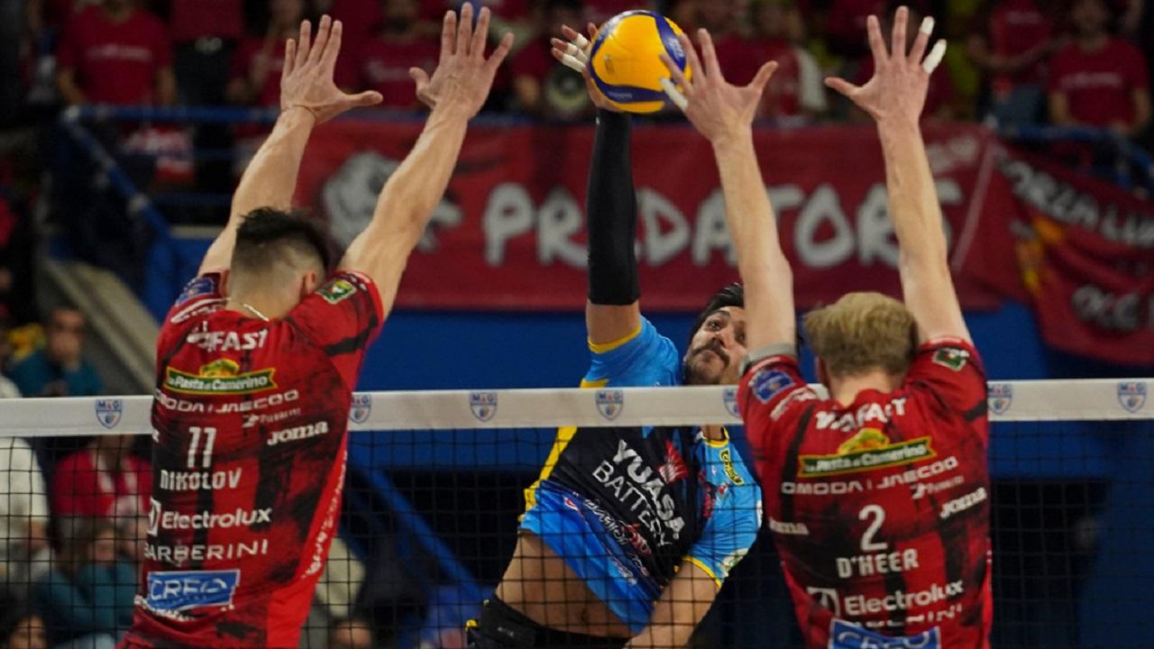 Tatarov in campo per Fedrizzi nel terzo parziale, e subito la prima azione è caratterizzata da difese impressionanti di Balaso che arpiona tutto; D’Heer a muro su Golzadeh per il 3-5, di Boninfante l’ace del 5-9. L’unico che passa con grande continuità sul fronte Yuasa è Pellacani, ben imbeccato da Falaschi, mentre è di Golzadeh l’unico turno al servizio minimamente redditizio e ovviamente tutto ciò è insufficiente a mettere pressione alla Lube. Sul 9-12 dentro Tenorio per D’Heer, clamoroso punto in difesa per i cucinieri che prima recuperano fuori dai led un pallone impossibile e poi con Bottolo pescano la linea di posto cinque con una difesa d’istinto che vale il 10-15. Poco altro da raccontare sul match, se non la passerella di Duflos Rossi che subentra a Bottolo e di Orduna per un ottimo Boninfante; dentro anche Koukartsev autore del punto finale, attimi di paura sul finale per Gargiulo che in ricaduta da muro vede franargli addosso Duflos Rossi.