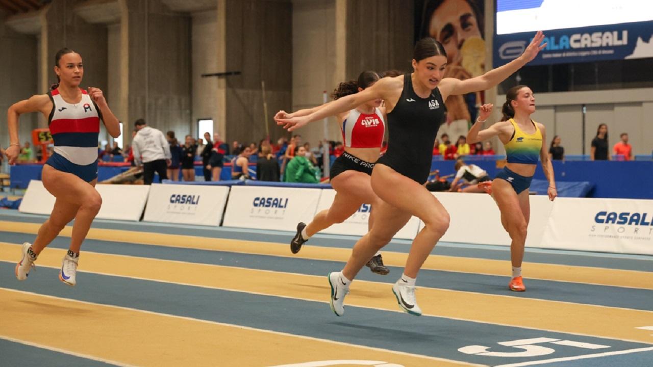 È già un weekend dai grandi numeri al PalaCasali di Ancona con quasi 2000 presenze in totale. Il primo record dell’anno è di Valeria Carnevali sui 3000 metri di sabato con il crono di 10’16”27 che vale il nuovo limite marchigiano under 20 indoor. Per la giovane portacolori della Sef Stamura Ancona, 18 anni compiuti da poco più di un mese, cinque secondi in meno rispetto al 10’21”32 realizzato da Margherita Forconi nel 2022. Dopo aver avvicinato il podio tricolore juniores nella scorsa stagione, con il quarto posto nei 5000 in pista e il quinto nei 10 km su strada, la mezzofondista allenata da Fabrizio Dubbini conferma i suoi progressi anche al coperto e chiude terza nella gara vinta dalla pugliese Viviana Marinelli (Alteratletica Locorotondo) in 9’42”00. Tra i protagonisti, l’eptatleta azzurra Sveva Gerevini (Carabinieri) al termine di una settimana di raduno ad Ancona. La cremonese si mette alla prova due volte sui 60 ostacoli, 8”46 in batteria e 8”42 in finale, poi salta 1.68 nell’alto mentre il tour de force si conclude con la misura di 12.95, ad appena cinque centimetri dal suo primato, nel peso che vede il successo a 14.50 del bronzo europeo U20 Anita Nalesso (Trevisatletica).